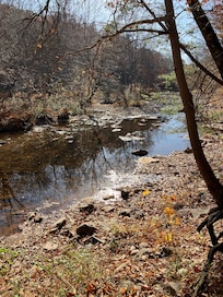 Complete privacy is what you will experience. Sitting on the deck facing the creek you will not see another house or cabin. If you need a break from life in the fast lane, this is it. We love the fact that within 10-15 minutes we can be in town to eat at fine restaurants, tour art galleries, antique shops, or get a massage. Also close by are local parks to boat, fish, hike, run, bike, or ride horses. It truly is the best of all worlds.