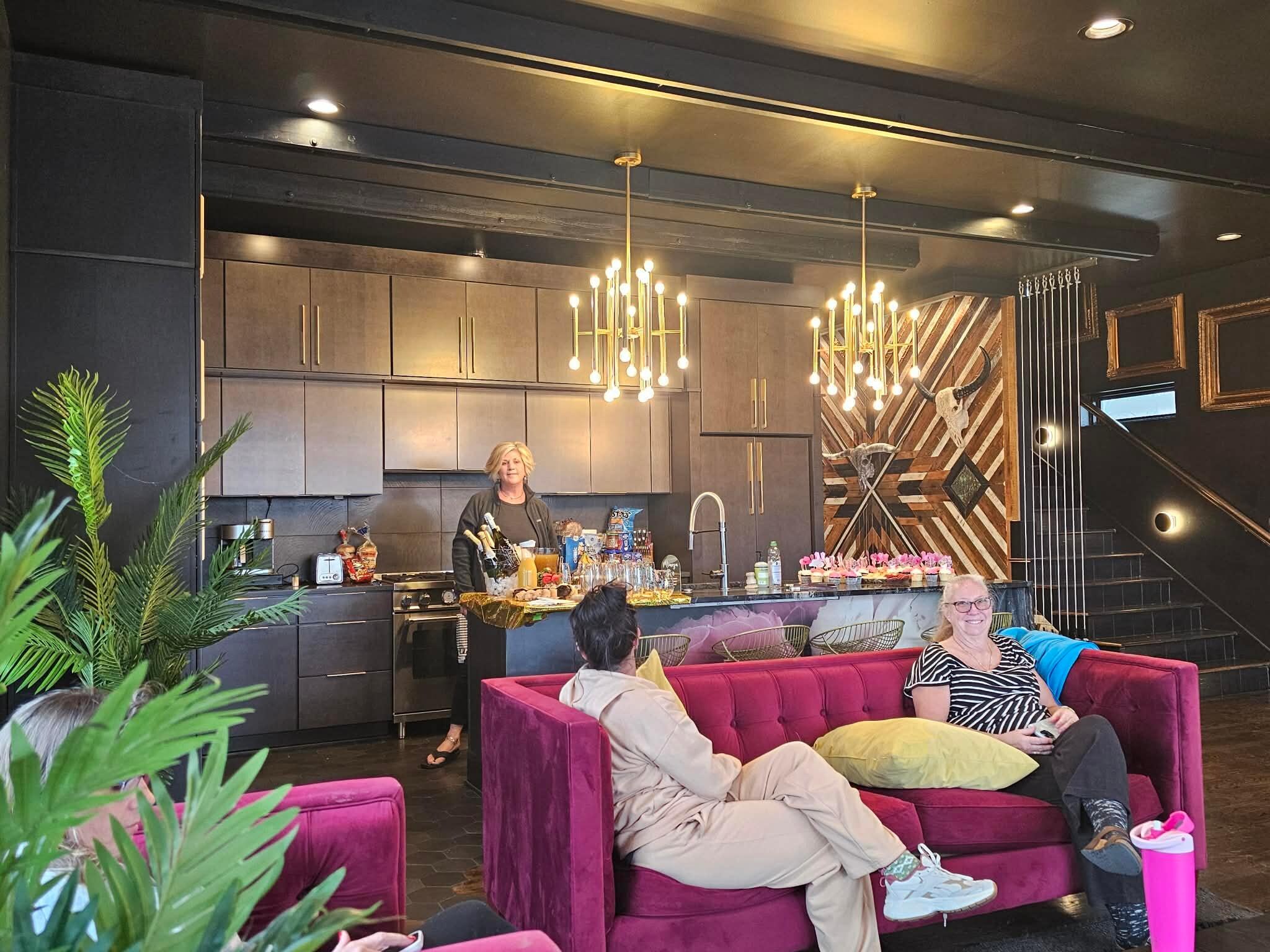 Your group will love the two expansive rooftop lounges, complete with multiple fire pits, TVs, and a grill, all overlooking the shimmering lights of the Nashville skyline. Inside, you'll find soaring ceilings, stunning murals, and gourmet kitchens perfect for culinary delights. After a day of exploring, relaxing at home is an easy choice.