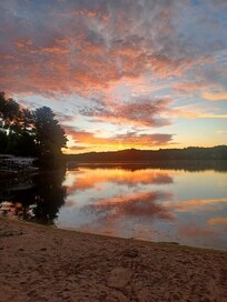 The Sandy Toes beachfront condo is perfect for a couple or family. The property is beachfront on Lake Delton in a quiet neighborhood in the heart of the Dells. The property has both indoor and outdoor (seasonal) pools and hot tubs for your year-round enjoyment. In the summer you are just steps away from fishing from the docks. Enjoy your morning coffee on the patio and watch the Wisconsin Dells Duck tours go by.