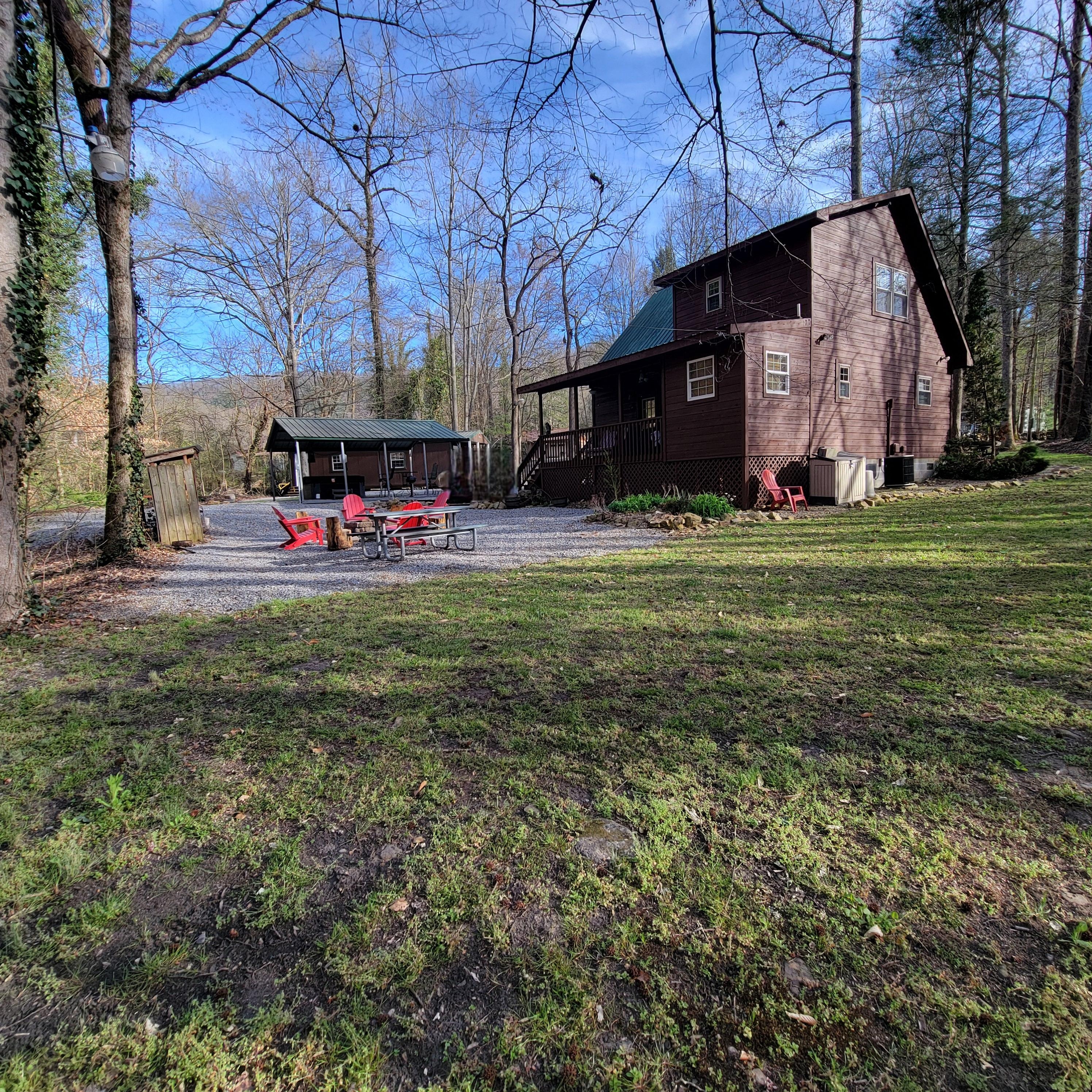 I could write a book about this cabin. You are about 15 mins from "town", about 40ish from Gatlinburg (a beautiful drive btw). Check-in was a breeze. Kitchen is fully stocked, lots of extras I did not expect, i.e. grill spray, bug spray, long lighters for the firepit etc. The parking is very ample and although the road to it is a bit tight, the turn around space in the driveway makes up for it. Comfortable beds, sheets and towels that smelled heavenly; even a throw blanket for the couch. Outside you will find peace and quiet, and basically 3 sided seclusion. A cozy firepit, awesome seating, picnic tables and even a bench to watch the creek and woods around you. Smooth, beautiful rocking chairs and rocking bench on the porch. The hot tub to unwind and soothe yourselves in. The gaming cabin is a vibe all of itself, seating and T.V, foosball, air hockey, Terminator video game, a multi arcade as well, we personally had a blast. It also has a mini-fridge to keep you playing longer! If I missed anything, I bet they had it, from a guestbook, to make-up towels, everything's thoughtfully labeled. The laundry on the outside was so great the few days it got really warm, as i didn’t heat up the cabin doing laundry. We will for sure be back!!!