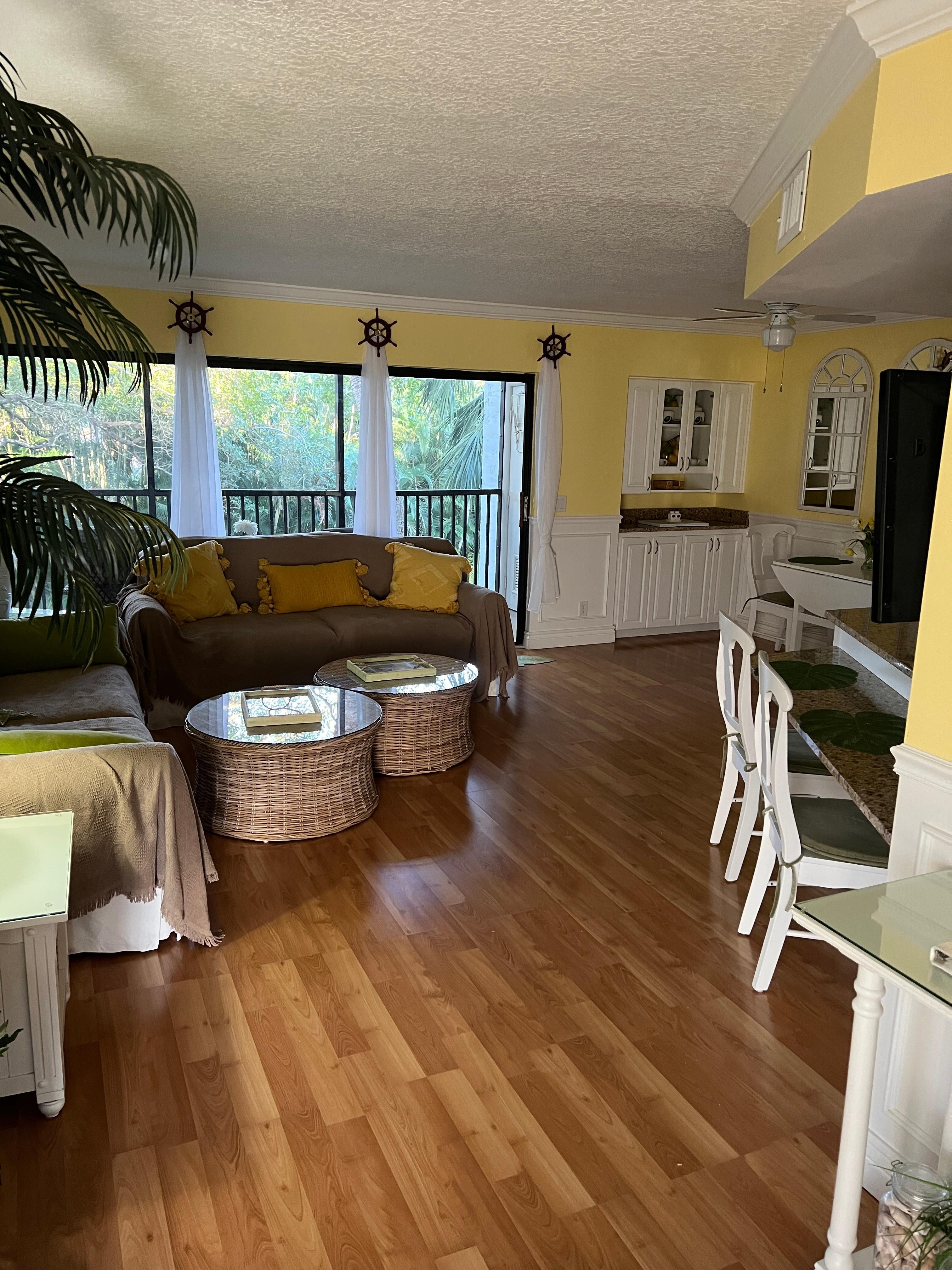Exceptionally Upgraded and lovely unit with completely private view of the pond and greeneries in Jupiter Ocean and Racquet Club. Fully Equipped kitchen with upgraded stainless still appliances, Nespresso Coffee Machine and Granite Counter tops. Front Load Washer and Dryer. Heated Toilet Seat with bidet function and Tower shower with Massage jets in the Master Bedroom. King Size bed in Master Bedroom and Queen size Sofa bed with orthopedic mattress and 4" mattress topper for extra comfort in the living room. 2 flat screens TV's ( Living room and Bedroom). Fully Furnished balcony with ceiling fen. Monthly rent includes electric, water, Comcast Internet and Basic Cable. No Smoking/No Pets. Hurricane shutters on all windows. Unit located on the 3rd floor (4 floors building). No steps to climb!!! (see pictures). There is an outside bike storage area in the building (bikes are not included). Key-less entry-in the unit. You can still use your keys, or just enter a pass code to open a door.