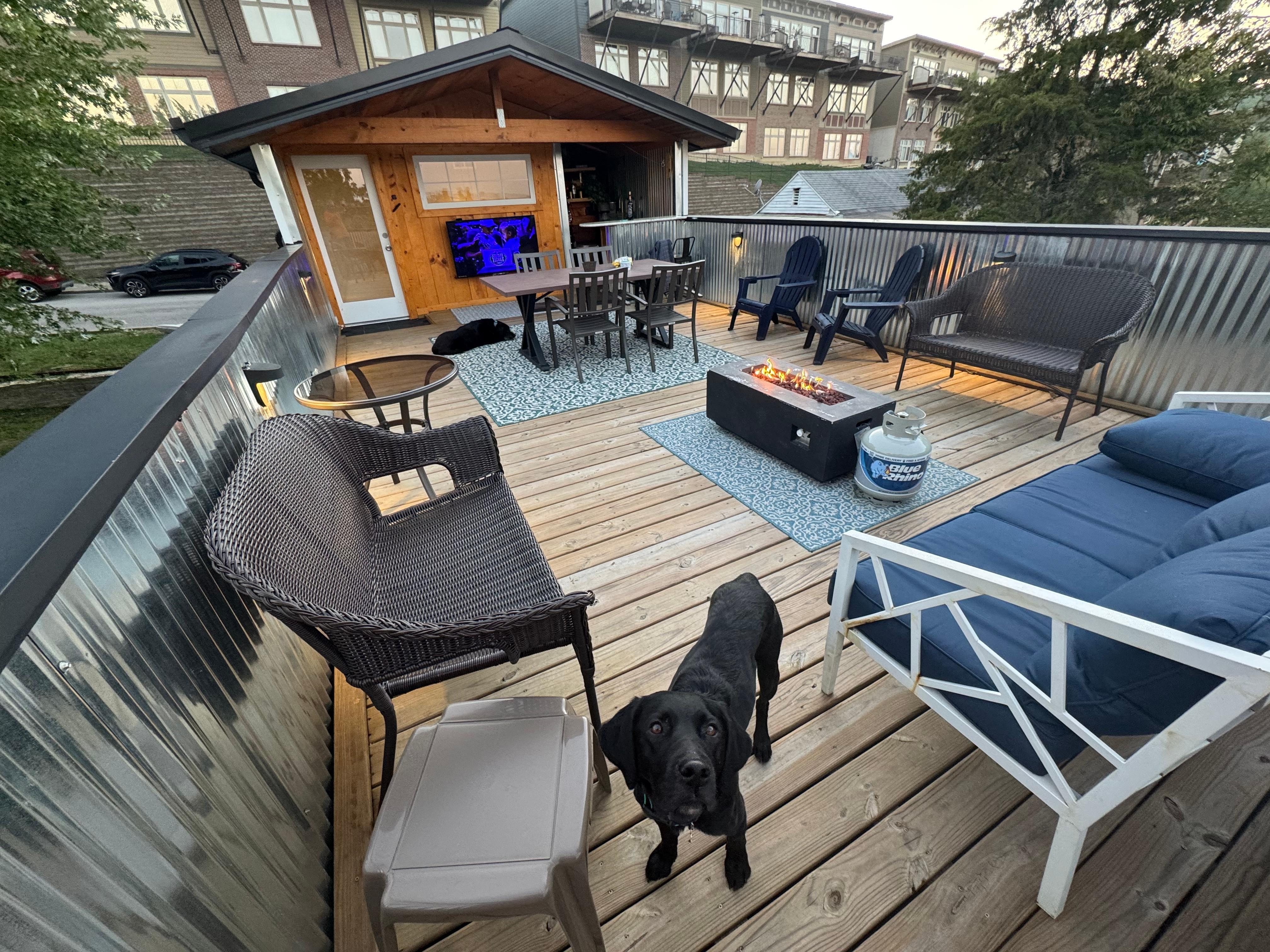 The Historic SouthGate House is a private oasis in the heart of the city. Just over a mile to Bengals and Reds stadiums, this modern 3 bedroom cliff dweller offers breathtaking panoramic views of Cincinnati. The private yard with a skyline view fire pit and huge rooftop deck with a wet bar is perfect for relaxing or catching a game on the outdoor big screen TV. Enjoy your morning coffee at the fireplace by the wrap around windows and watch as the city awakens at this ideal VRBO retreat.