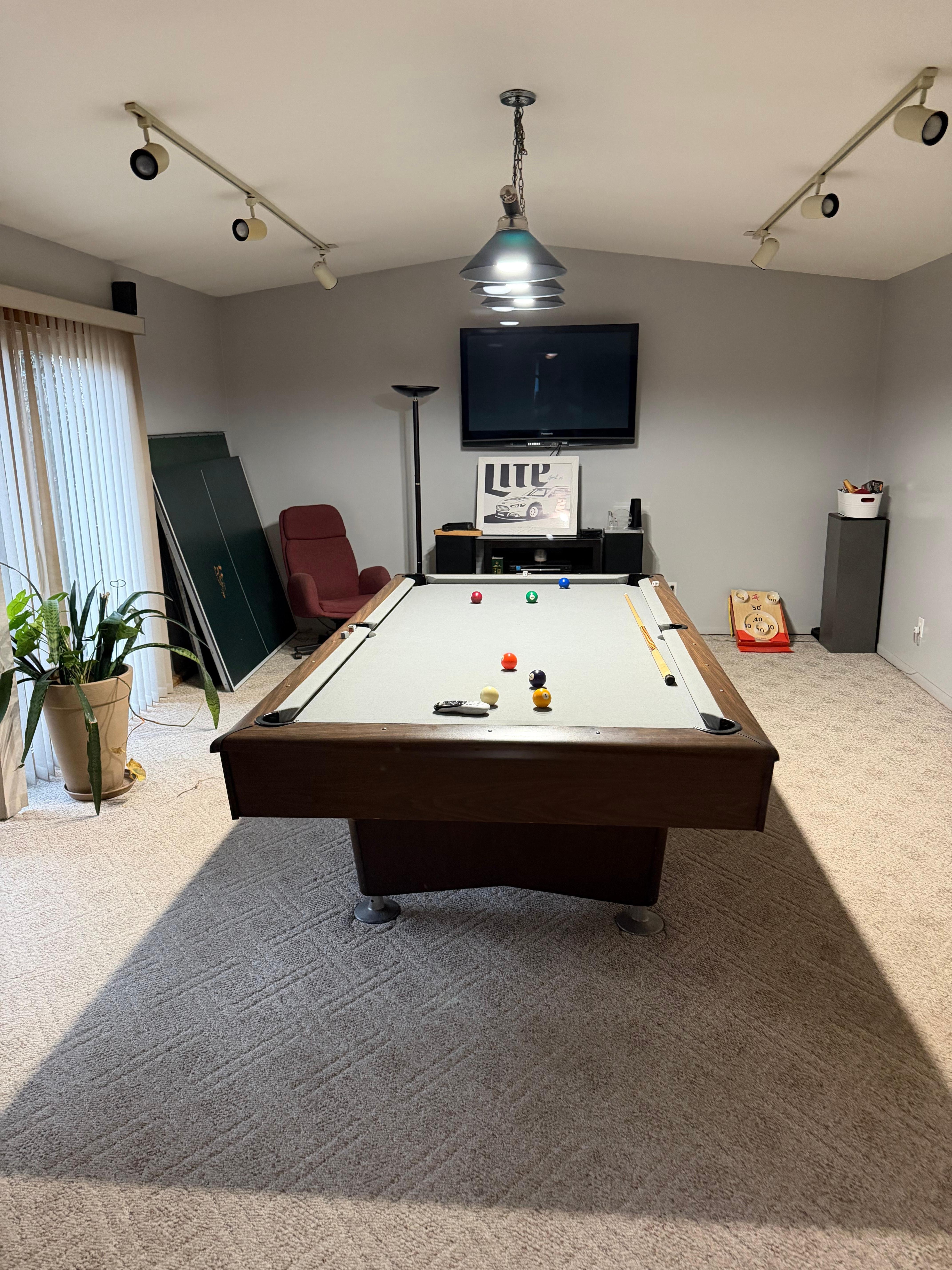 Fun House 2 with a Pool table on main floor game room with walk out patio door.
