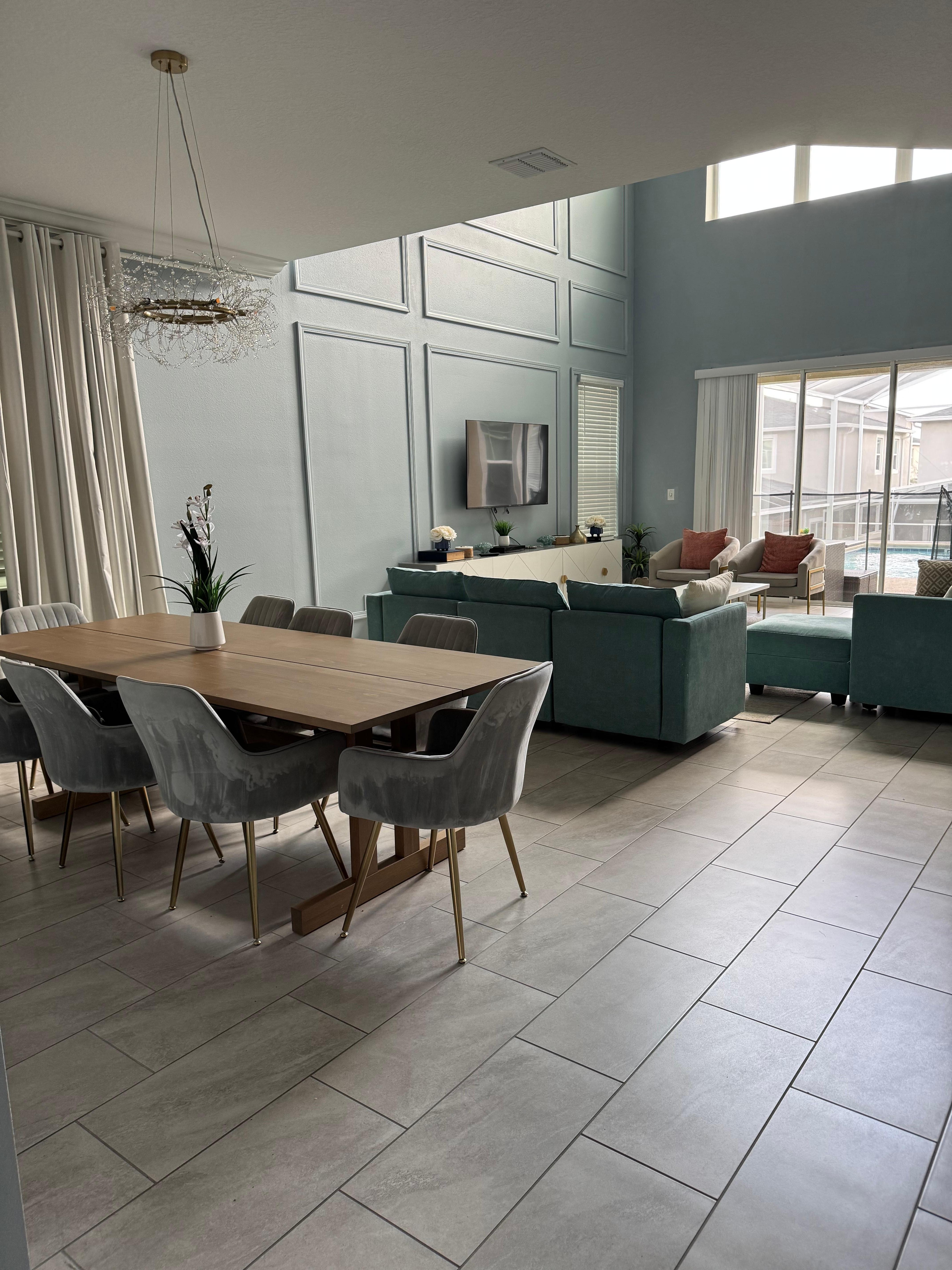 Experience the ultimate getaway in this beautifully designed 5-bedroom, 5-bathroom home, perfect for up to 14 guests. Featuring themed bedrooms, a private pool, and a fun-filled game room, this luxurious retreat combines elegance with family-friendly comfort. Located in Champions Gate Resort's top-tier amenities—pools, a lazy river, tennis courts, mini-golf—and close to markets, restaurants, and shops, it’s the perfect sanctuary for an unforgettable Orlando/Kissimmee vacation.