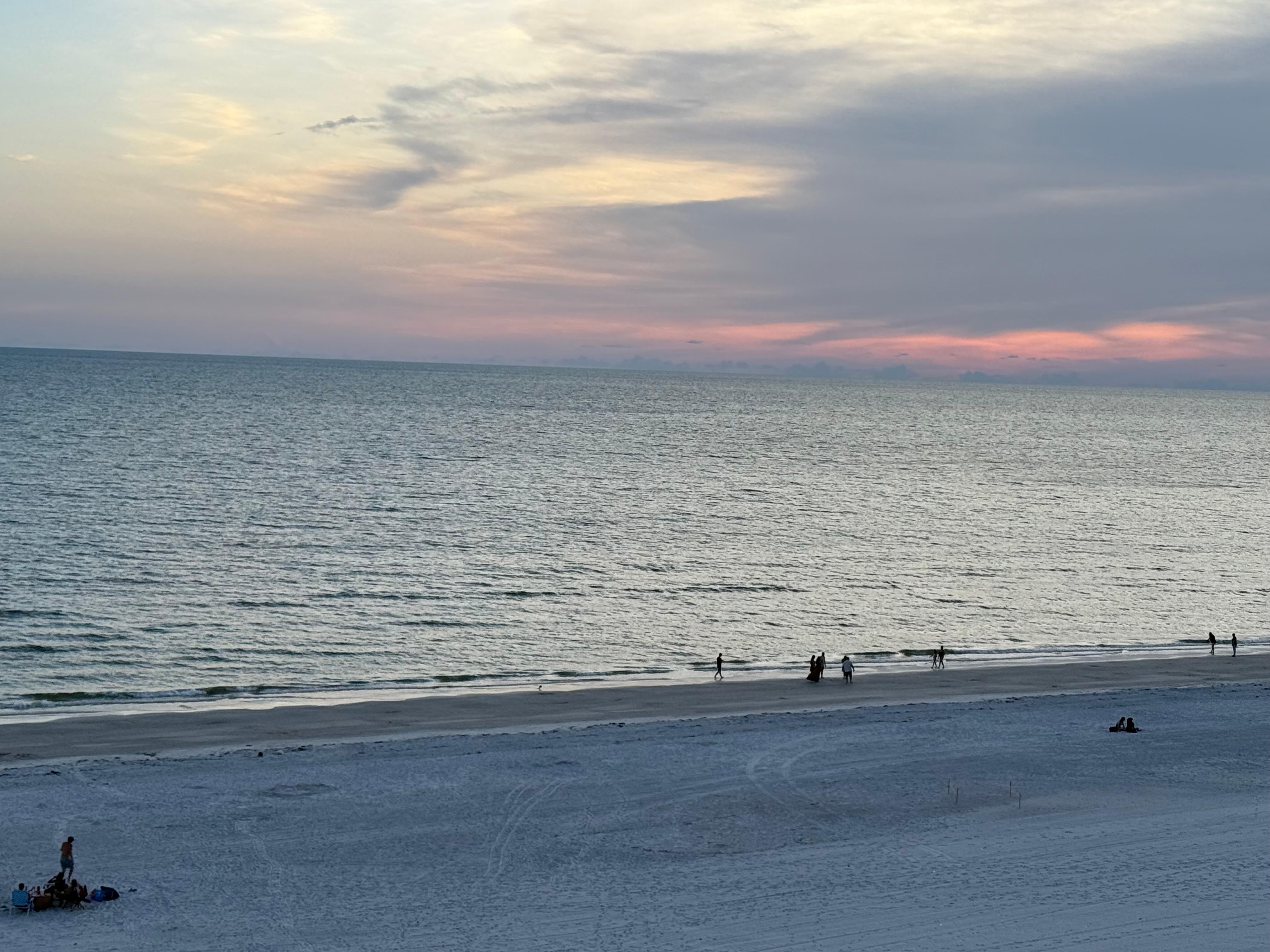 We had a great week in this condo! The balcony view couldn't be beat. Condo was well equipped with everything we needed. Plenty of kitchen equipment. The only down-sides were with the property itself. The elevator could get very crowded, and the wait was long at times. There is a keypad to enter the pool, elevator and pool area restrooms. You also needed the key pad to EXIT the pool, so it became very tedious. Water temperature in the condo showers was very sporadic and hard to control. Again, likely an issue with the building itself. Our A/C went out the night before checkout. The management company had someone responding within an hour of us letting them know that there was an issue. Beachfront location was ideal, and easily walkable to John's Pass Village. If you're looking for later night life and music, be aware that the entire area (maybe county-wide?) has a very strict noise ordinance and there is no outdoor live music past 9:00 pm. We used Uber the entire week and rides were always prompt and available. Uber ride up to Clearwater Beach was about 30 minutes and $18. The condo could use a bit of updating, but overall very well equipped. If you are into cooking, bring your own knives - not a sharp one in the bunch! The king sized bed in the master bedroom was VERY comfortable. I made a note of the brand of pillows because they felt so good! This property is a great choice!