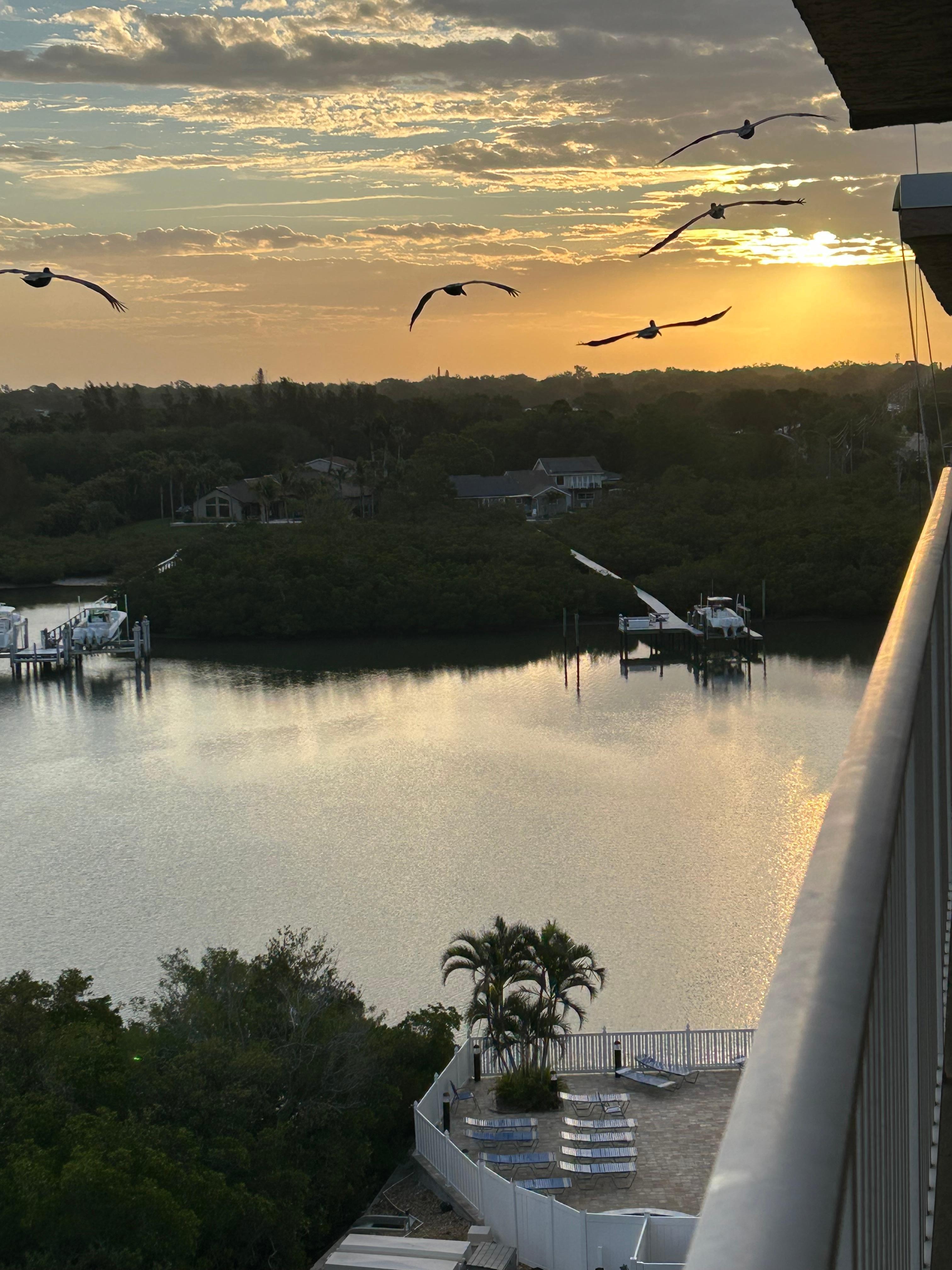 I love the gentle boat traffic and the incredible bird life that comes with living along the waterway. It’s peaceful and private, the kind of place where sunsets feel like a daily gift. And once night falls, I enjoy watching the twinkling lights from the neighboring condos—such a calm, beautiful way to end the day.