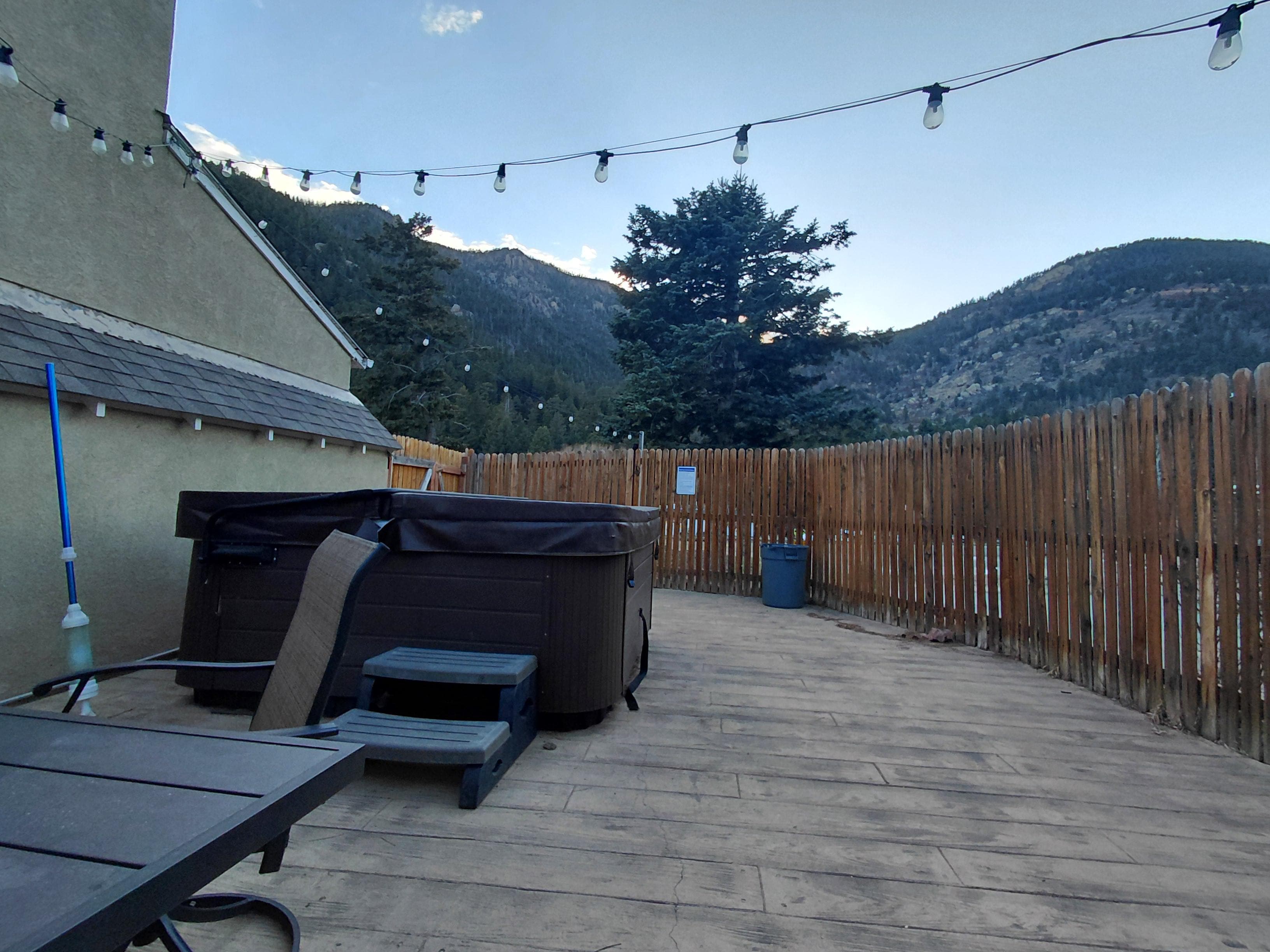 🛁 Private hot tub and spacious deck with outdoor dining & fire pit