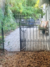 Brick paver area also includes a patio set. A gas grill is also available for your culinary delights!