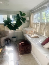 A perfect retreat. Just a short walk to historic downtown Mount Dora. Enjoy nearby shops, cafes and galleries. Located in an established neighborhood amongst other renovated historical cottages. Walk to the library, parks and to Lake Dora at sunset. Built in 1955, this inviting home has been lovingly brought up to date. The large bedroom offers a queen sized bed , a desk for your laptop or reading. In the living room, a full size sleeper sofa and a generous window seat easily accomodates overnight guests or afternoon naps. Throughout, large windows and glass paneled doors fill interiors with natural light.