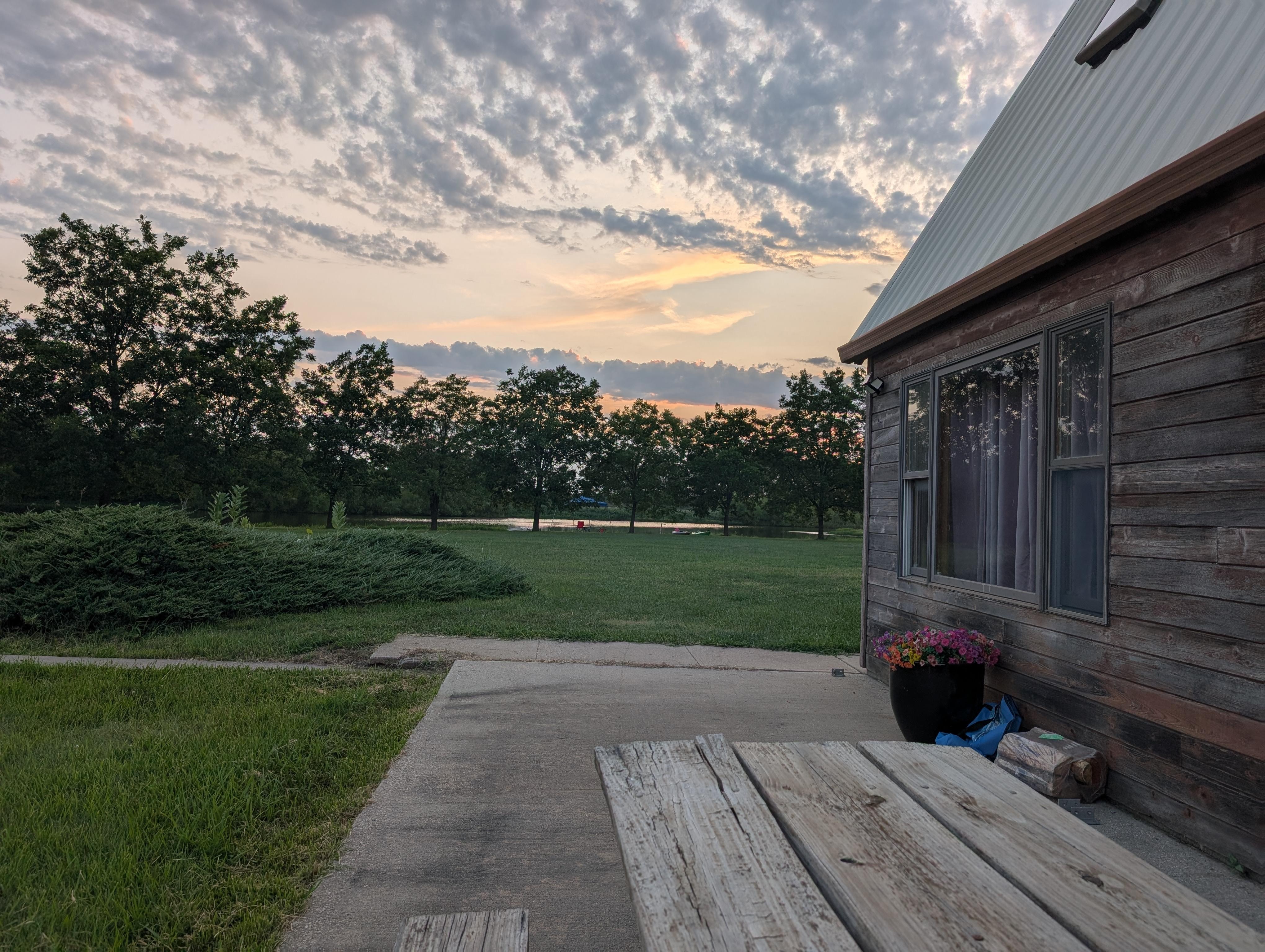 Unwind at this delightful house. With 4 cozy bedrooms including 3 queen beds, 1 king bed, and 2 twin beds, there is a large living area so guests will have plenty of space to relax. The house features central air & heat, a washier and dryer, all the kitchen amenities for a home type of comfort. There are 2 bathrooms, one is a tub/shower combo while one is a large walk-in shower. A nice patio right off the kitchen is available for early morning coffee watching the countryside wake up around a nice 5 acre pond, it is also the perfect place for catching the evening sunsets. The large yard gives ample opportunity to play a game of corn hole or just for kids run around .