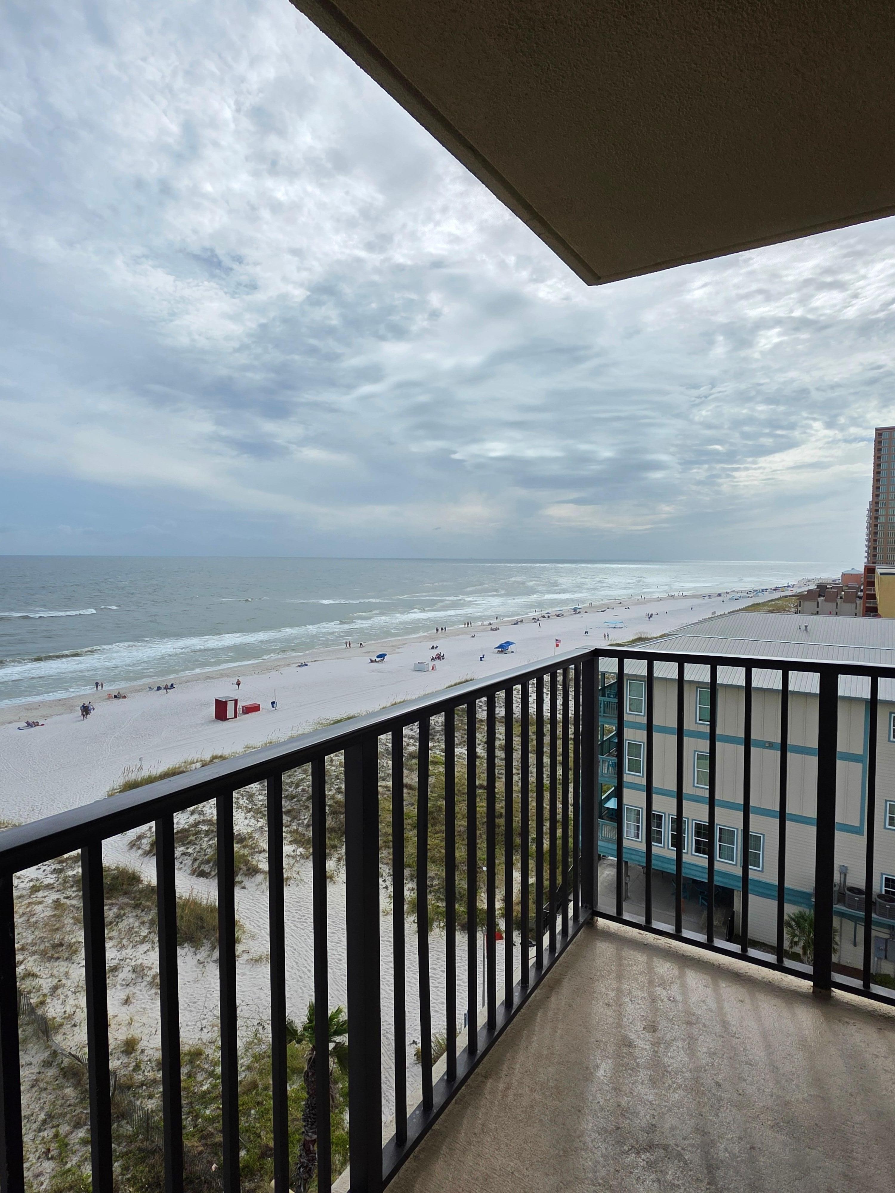 The property was exactly as described and we loved the view from the balcony. Having an end unit with side railing instead of a wall was perfect to see miles down the beach and ocean in that direction. The cons would absolutely be the cleanliness of the kitchen dishes/appliances. Morning coffee on the balcony was a plan each morning but the coffee maker was too dirty to use or clean the inside easily. We rewashed a few cups cups and utensils before use too. The other con would be the elevators, there are 2 but they are very slow so plan for that especially if you have children. Overall, we had a great stay and enjoyed the easy access of the beach!