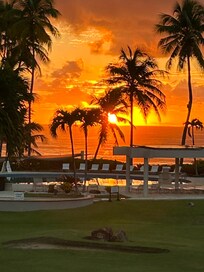 Crescent Cove is a controlled access property located within Palmas Del Mar Resort, a unique beachfront resort. This villa has been completely renovated in 2024. Amazing kitchen, floors and bathrooms. The Villa is on a second level and is steps away from the beach and pool. It has 1 king size bed in master bedroom, 2nd Bedroom with 1 Queen size bed and a 3rd bedroom with a 2 twin beds that can convert to a king bed. 3 full bathroom and 1 half bath. Sleeps 6 and can accommodate small children. It includes a fully equipped kitchen and laundry. The villa has a 55" flat screen TV in the living room and 40" flat screen TV in master bedroom and 32" in guest bedrooms. It is served by split units, internet and free Wi-Fi . Beautifully furnished Spectacular ocean views from the first level balcony, master bedroom and 3rd level balcony.