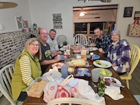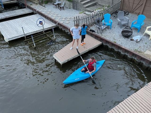 What an ideal setting for a family gathering. Beautiful setting. Spacious living and dining spaces with a fully equipped kitchen. We enjoyed the firepit on the shore and the outdoor grills for meal preparation. There were more stairs than we expected (two stories in the house and two three levels of decks, but all stairs had railings and were safe. Kim and Greg were more than accommodating to our questions and unique situation. Parking is tight but adequate for a large gathering. We have nothing but wonderful memories of a weekend together on the lake. Already talking about a return.