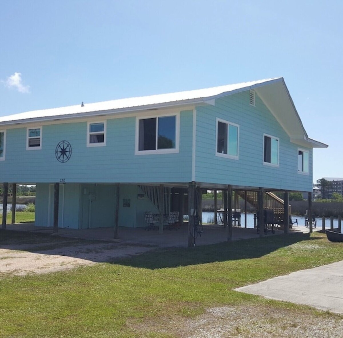 Talk about location! You are a short walk to The Hangout, Coffee Shops, and the Beach. This home can sleep 12 guests. You can fish directly off the dock and catch redfish, trout, and other species. You can park 8-10 cars on the property at no additional cost. The home has water views from almost every room, even the outdoor shower has a view. You can launch a boat or kayaks from the shared boat ramp. This is a great budget friendly family home for all size groups! With fresh new updates, I am excited to host you! Message me for special request