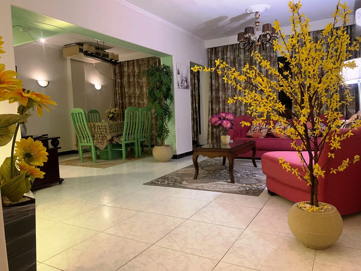 Get ready to relax in this two-bedroom apartment in Nasr City, Cairo beside city stars mall, coffee shops, restaurants.