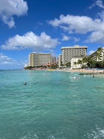 Great stay. The condo is spacious, close to a nice beach, with pretty spectacular views day and night, and near lots of shopping and restaurants at all price levels, It’s well-equipped, including lots of useful beach gear. Parking’s a major plus, as are the fast elevators, and in-condo laundry. Pool’s nice, though water’s a little chilly. Owner Richard responded quickly and effectively to questions. Three-bedroom rentals appear to be a rarity in Hawaii, especially Waikiki. It was much nicer to have everyone in our group together, instead of in separate hotel rooms without kitchen facilities. The room with toilet and sink is separate from the room with big shower and sink, and that layout worked very smoothly for 4 adults and 2 kids. This condo’s a block from the Hyatt Regency, and three rooms there would’ve cost over 1000 a night.I highly recommend this condo.
