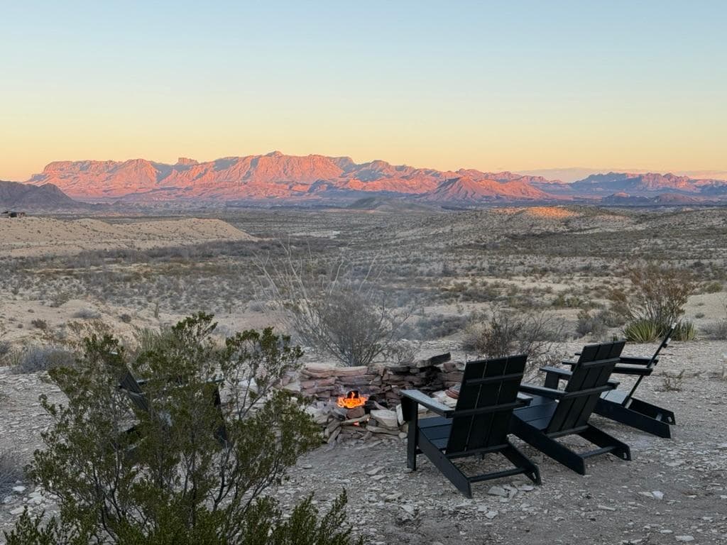 A modern adobe designed for slow mornings and desert sunsets. Wake up to sweeping Chisos views, sip coffee on the porch, and unwind after exploring Big Bend at Big Bend Vista.