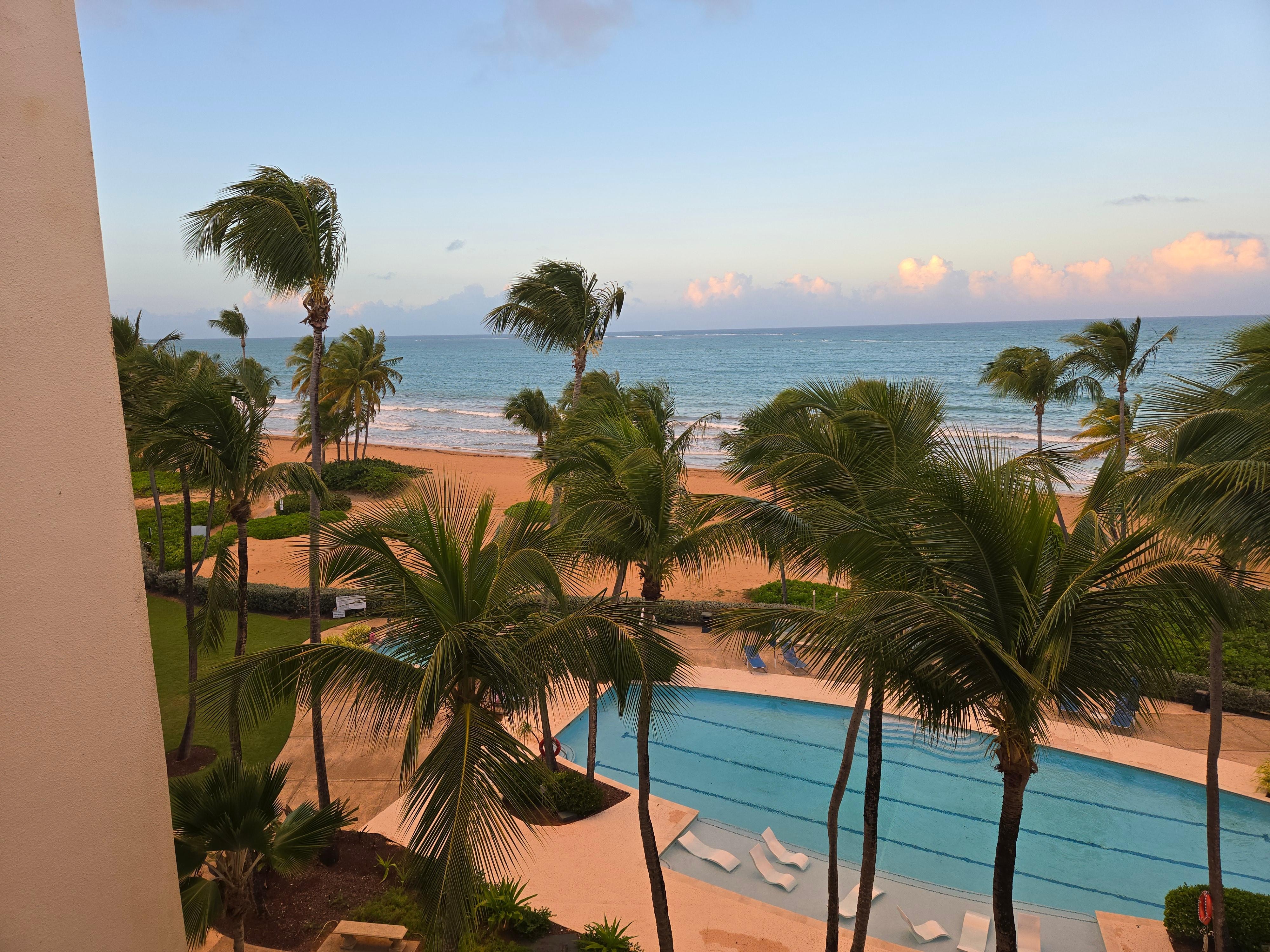 Located within the premises of the Wyndham Rio Mar Beach Resort gated community with access to restaurants, two 18-hole golf courses, 13 har-tru courts operated by Peter Burwash International, bicycle trails, plenty of water sports, hiking, casino, live entertainment, beauty salon, business center, concierge, and shopping boutiques. The grounds have beautiful, lush, tropical gardens.