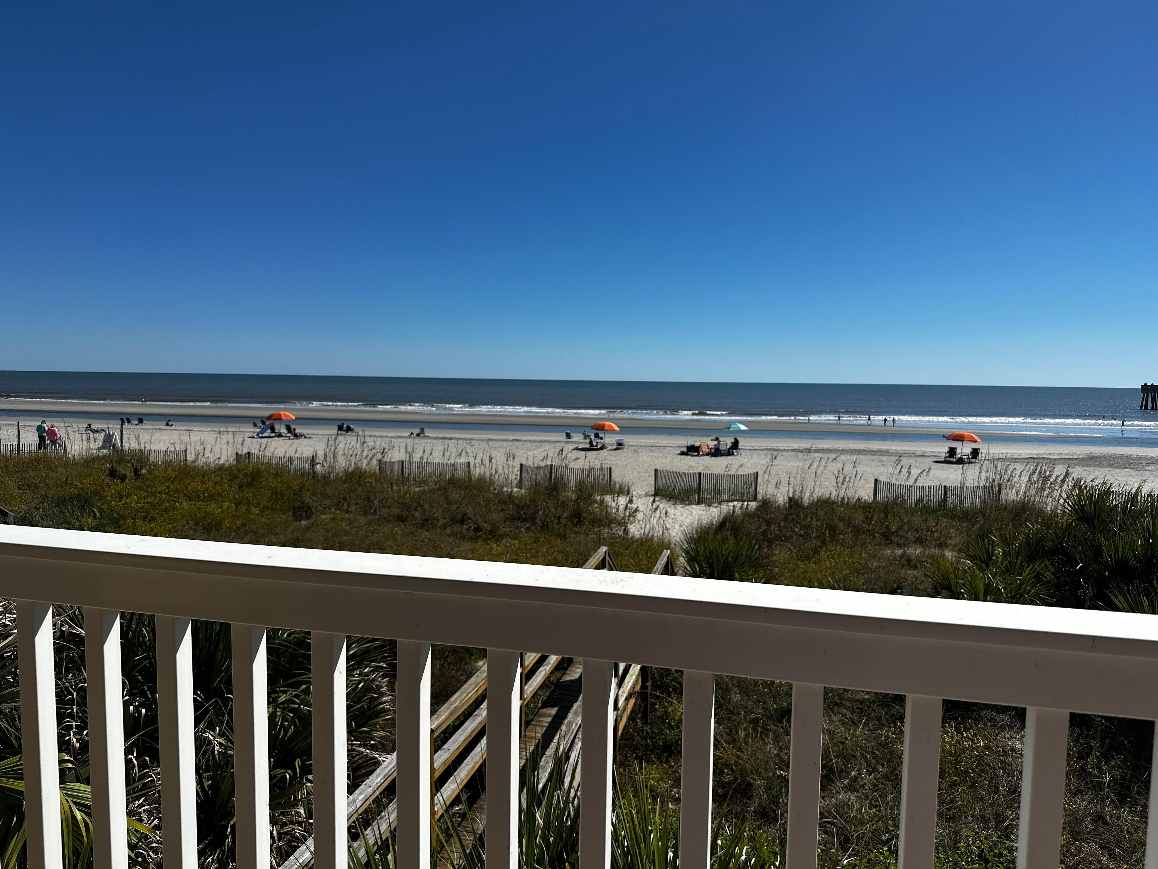 This first-floor Seaside Condo has spectacular views of the beach and Folly Pier and is exactly what you need to truly leave all of your worries behind and enjoy a memorable beach-cation! Access the oceanfront balcony from both the living room and main bedroom where you can relax and enjoy the views. A well-equipped kitchen offers everything you will need to feel right at home and the bright, yet tasteful interior decor is something you won't find anywhere else.