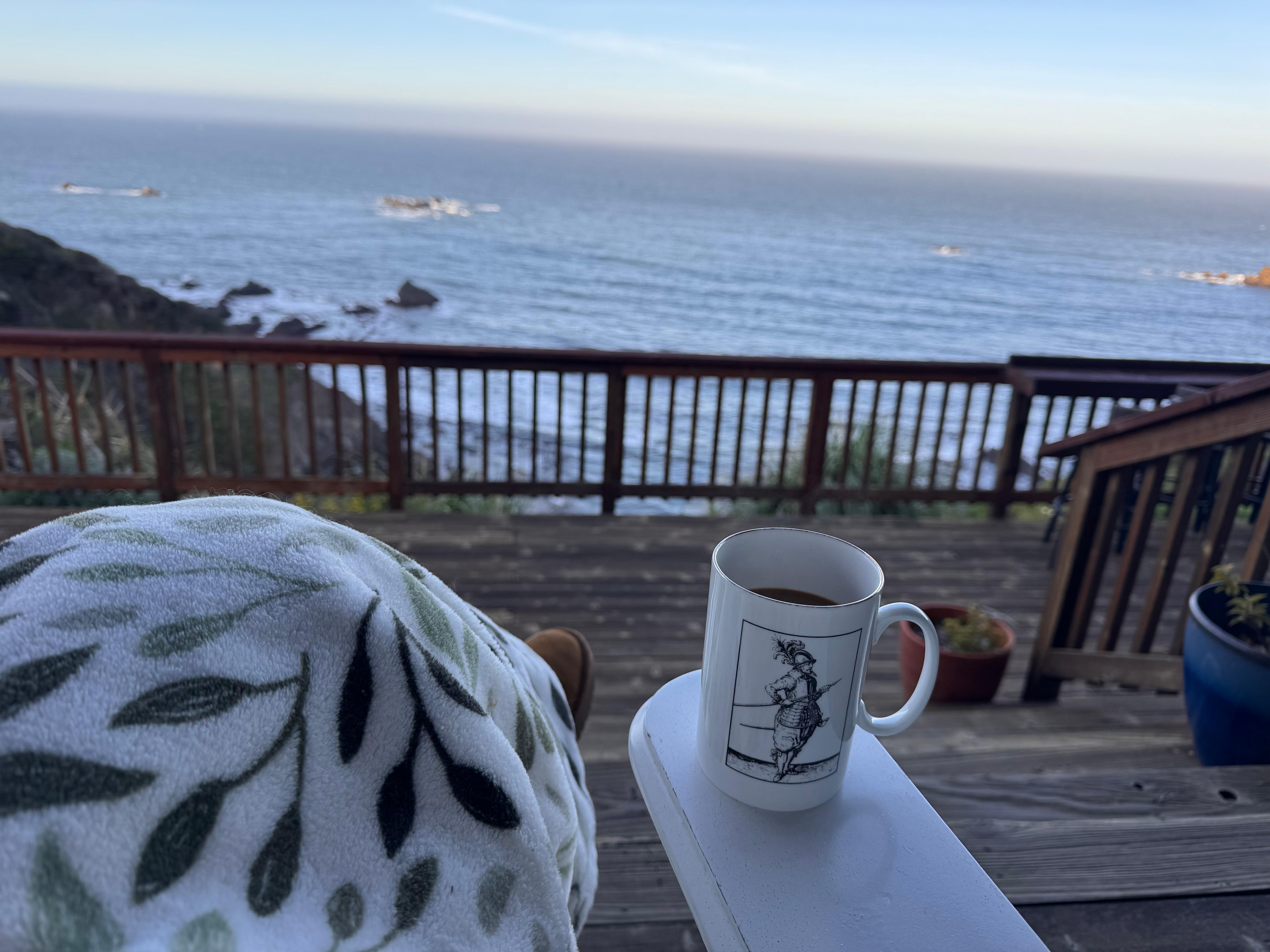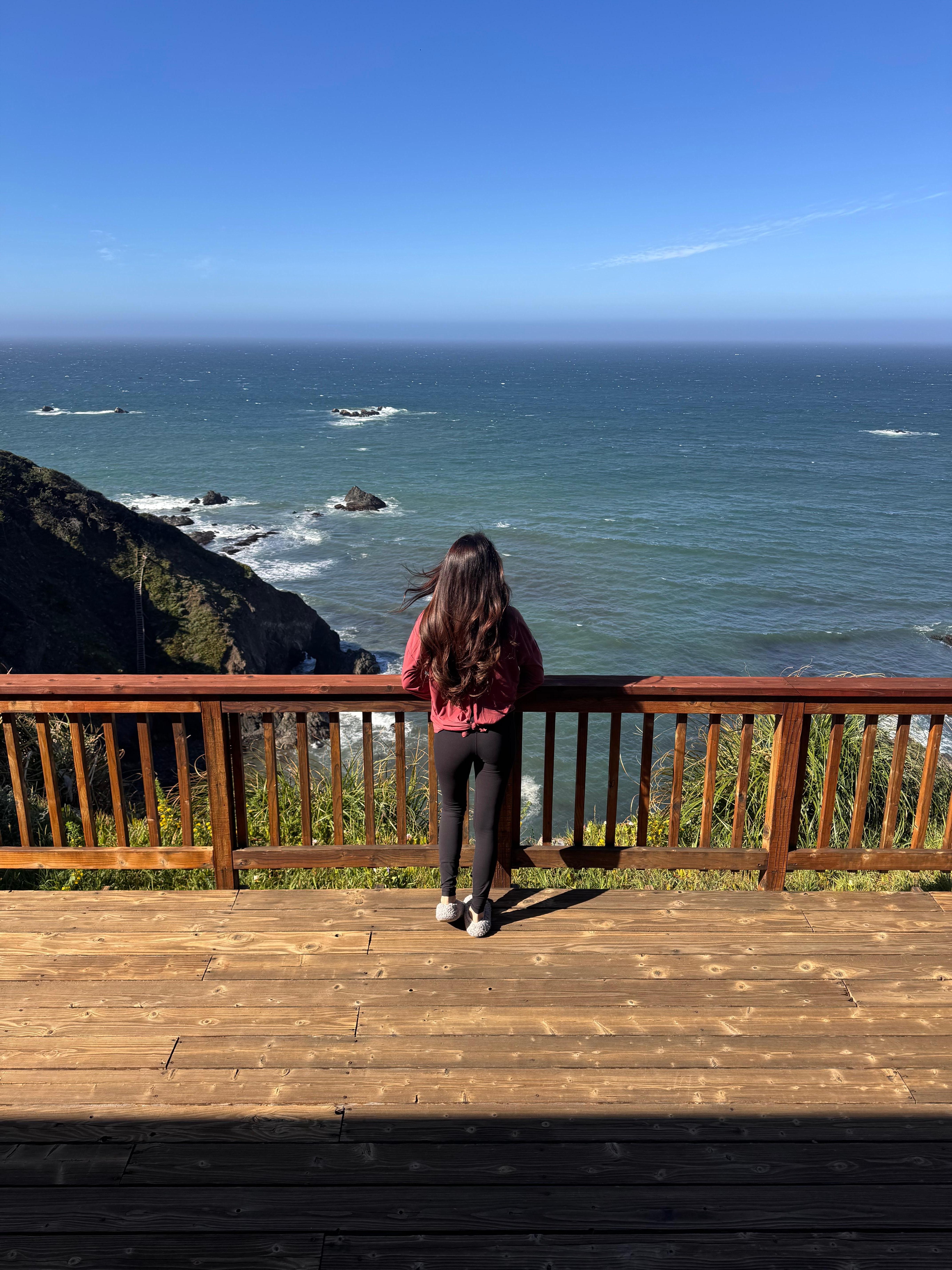 Outside, you’ll have ample room for everyone to enjoy the coastal climate. The shared outdoor spaces include wide decks with seating, a private hot tub at the main home, and areas perfect for morning coffee, stargazing, or unwinding with a glass of wine after a long day on the trails. Towering cypress and coastal scrub create a peaceful backdrop, while ocean breezes move gently through the property. Listen to the sea lions while you lie in bed or even watch them from the deck!