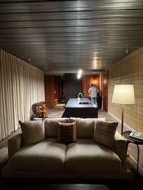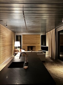 Come experience the Roadrunner cabin at Gamenthaler! A stunning, brand new 1-bedroom, 1-bath modern retreat completed in 2025 just a few miles outside Fredericksburg, Texas. At the end of a private gravel road and perched atop a scenic hill overlooking a wide, tranquil valley, this architectural gem combines rammed earth, metal, and glass for a striking yet harmonious blend with its natural surroundings. Less than 10 minutes from downtown scenic Fredericksburg, your stay will be the perfect blend of quiet nature escape with access to all the amenities of town. Designed for couples seeking a peaceful romantic getaway, this unique dwelling offers the perfect balance of luxury and solitude. Floor-to-ceiling glass windows frame ever-changing views of the Texas Hill Country—watch deer graze in the distance, listen to the call of wild turkeys, and catch glimpses of foxes or coyotes moving quietly through the cedars. Step outside onto your private elevated porch, where mornings begin with soft sunlight spilling over the valley and evenings end under endless stars. Inside, enjoy modern comforts—a fully equipped kitchen, plush king bed, sleek bathroom, and cozy lounge space, large wood burning fireplace (firewood included)—all thoughtfully designed for comfort and connection. The home also includes high speed internet (starlink) and a smart TV with access to your favorite streaming services (login required). The home is one of three small dwellings on a secluded 100-acre property, each privately situated and rented separately. As a guest, you’ll have full access to explore the land, wander the trails, or simply relax and soak in the stillness of nature. Whether you’re sipping wine from a nearby vineyard, reading by the window as the sun sets, or simply unwinding in quiet conversation, Gamenthaler offers an experience that feels both grounding and indulgent—a true retreat for the senses.