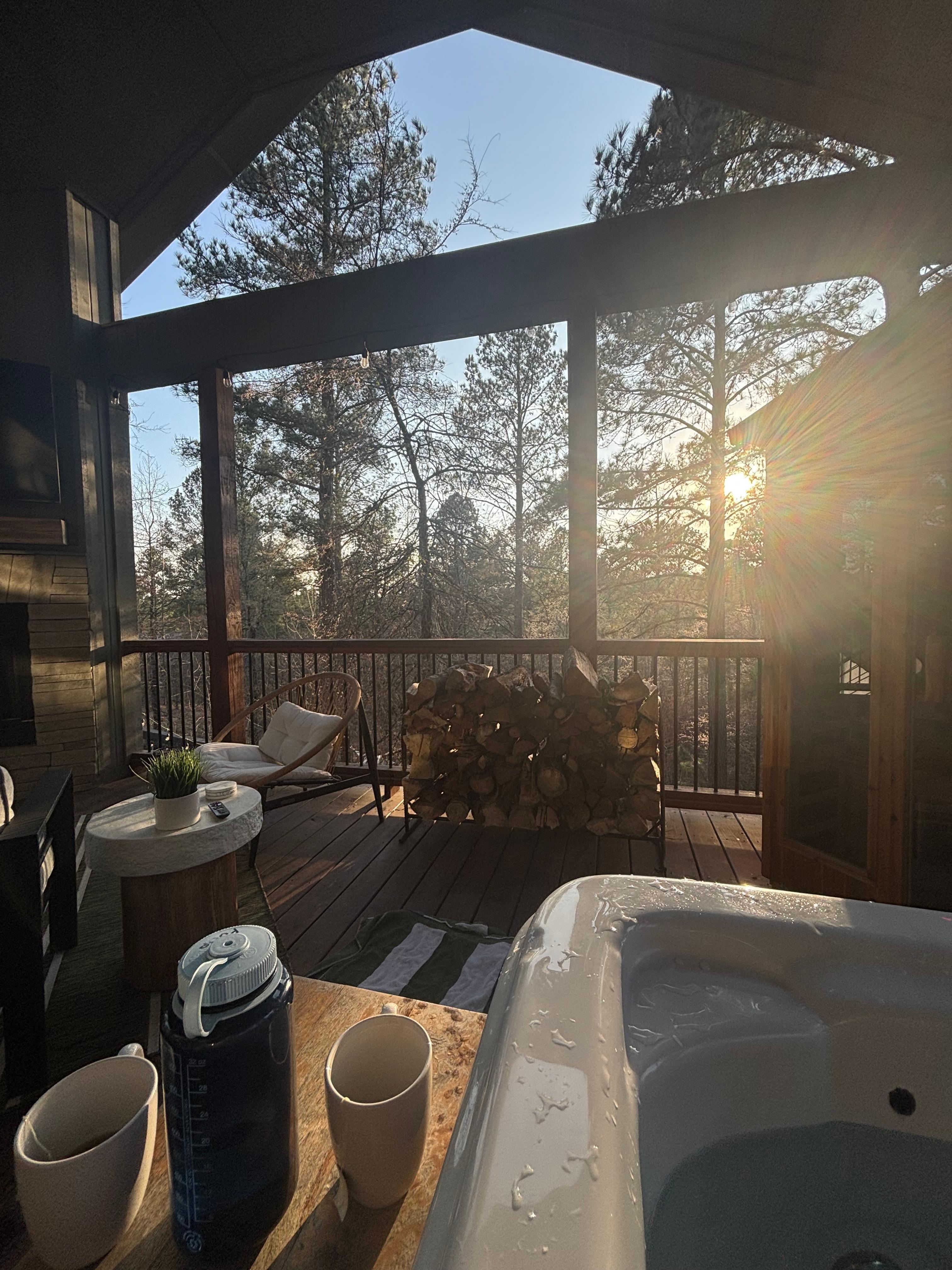 Wonderful stay in every way. It looks in person exactly as depicted. The hot tub, sauna, and outdoor projector all worked perfectly. TVs were very easy to log into regarding Amazon prime and Spotify. We loved going to Okie girls coffee and ice cream every day for a coffee. Very close to everything in Hochatown. Not even a 10 minute drive to most restaurants and businesses. All of the food we had here was incredible. Not one complaint.