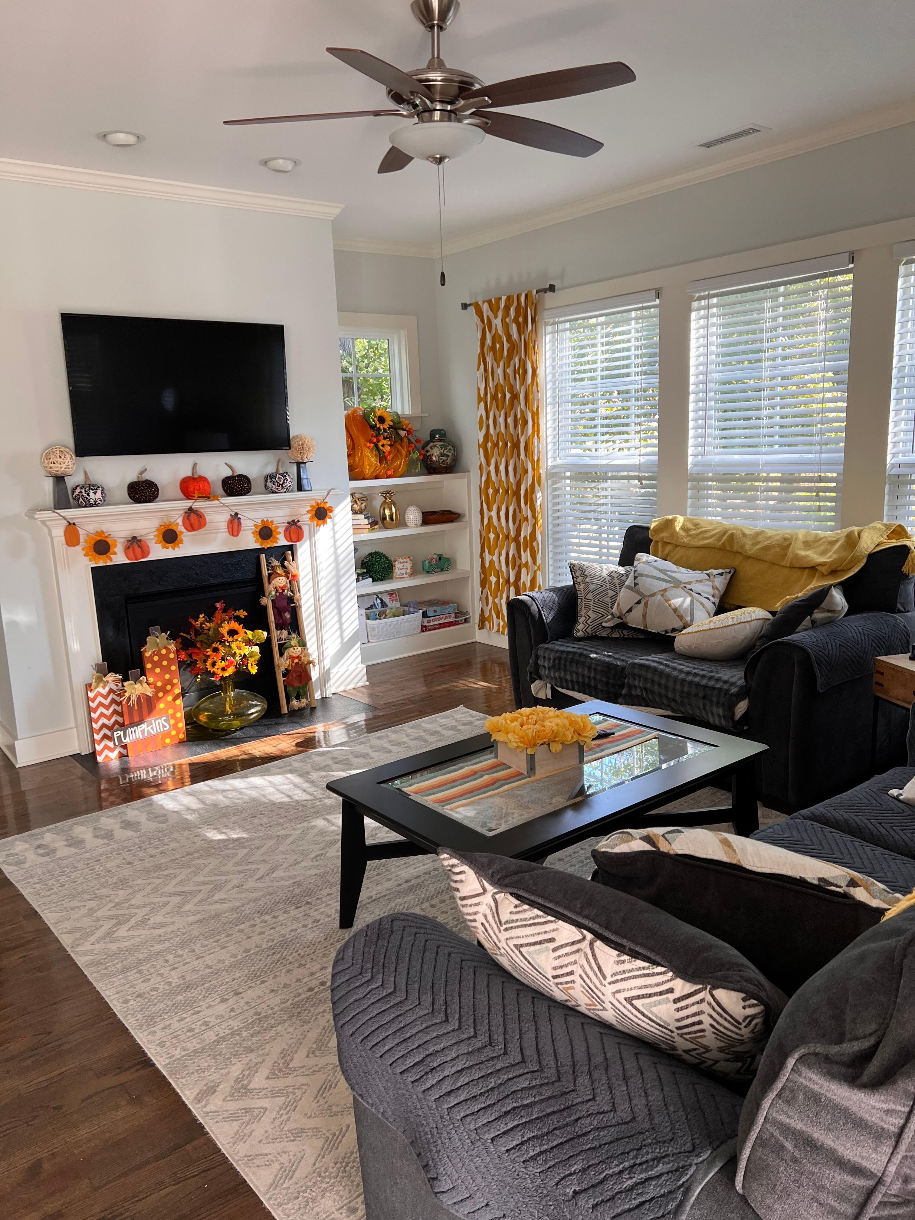 ✔ Central air conditioning and heating, ceiling fans, and a portable fan in garage