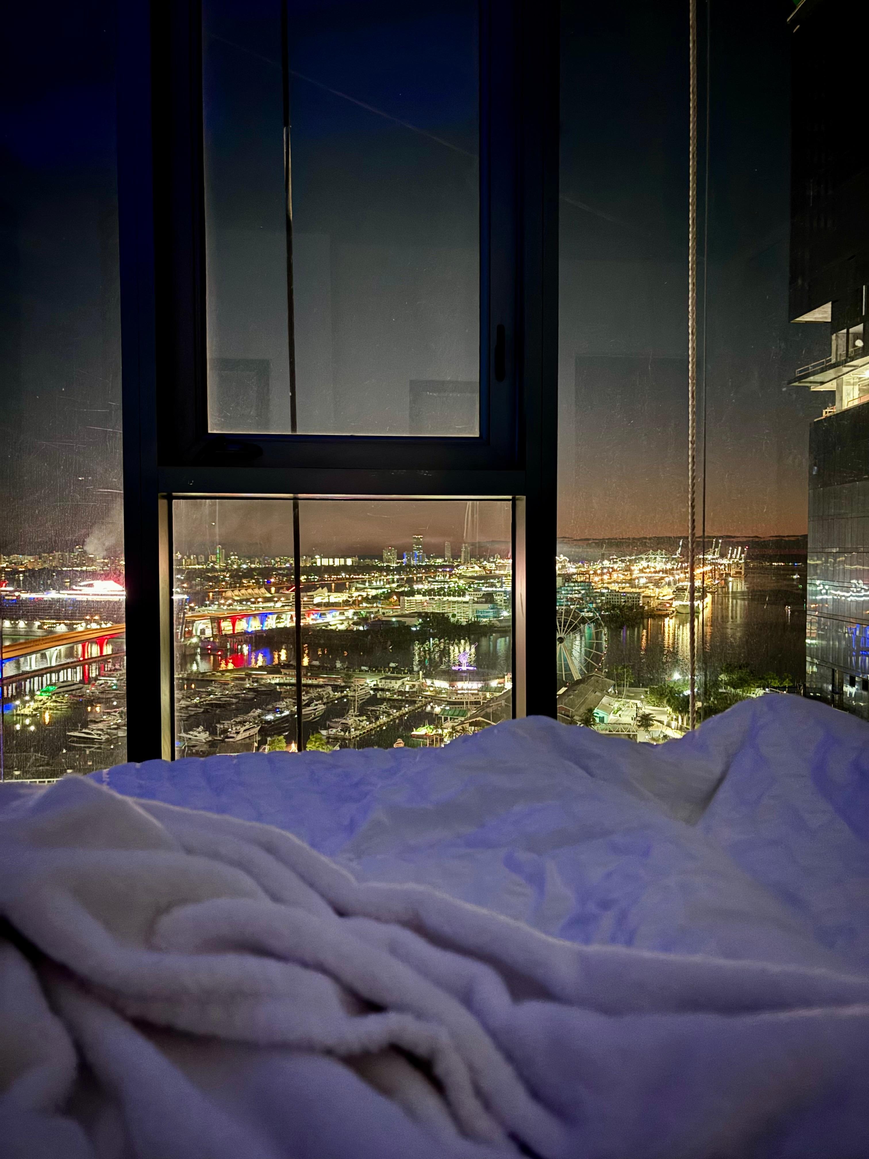 Wake up to sunrise over the water and wind down to the glow of the Miami skyline.