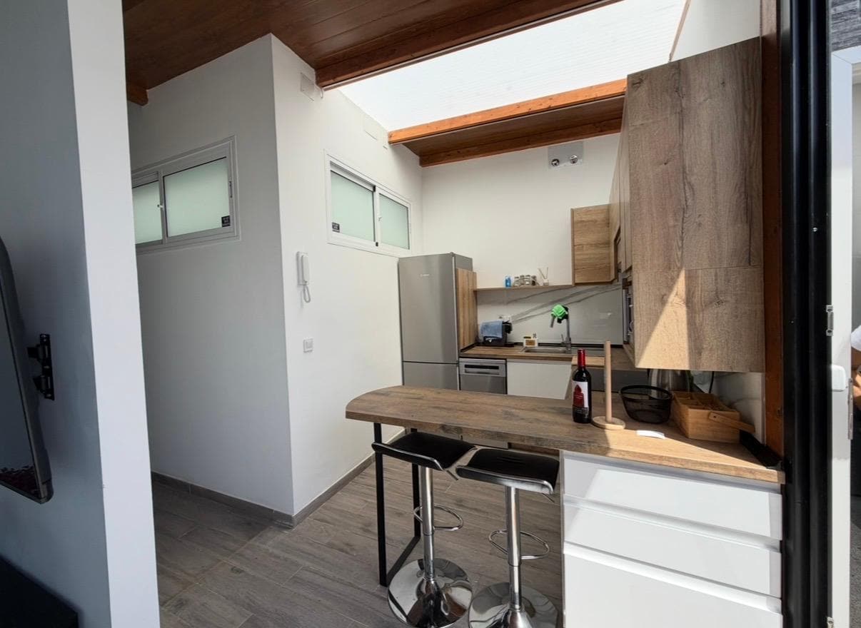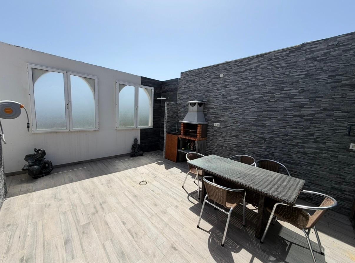 Enjoy a private covered terrace, perfect for relaxing in the evenings. The home is in a very quiet neighborhood, ideal for unwinding. La Laja Beach is just 1 km away, Las Canteras Beach is 9 km away, and the historic Vegueta old town is 4.5 km away. The Mirador and Las Terrazas Shopping Center are 4 km away. Department stores, supermarkets, and the main bus station for easy public transport access are just 1 km away.