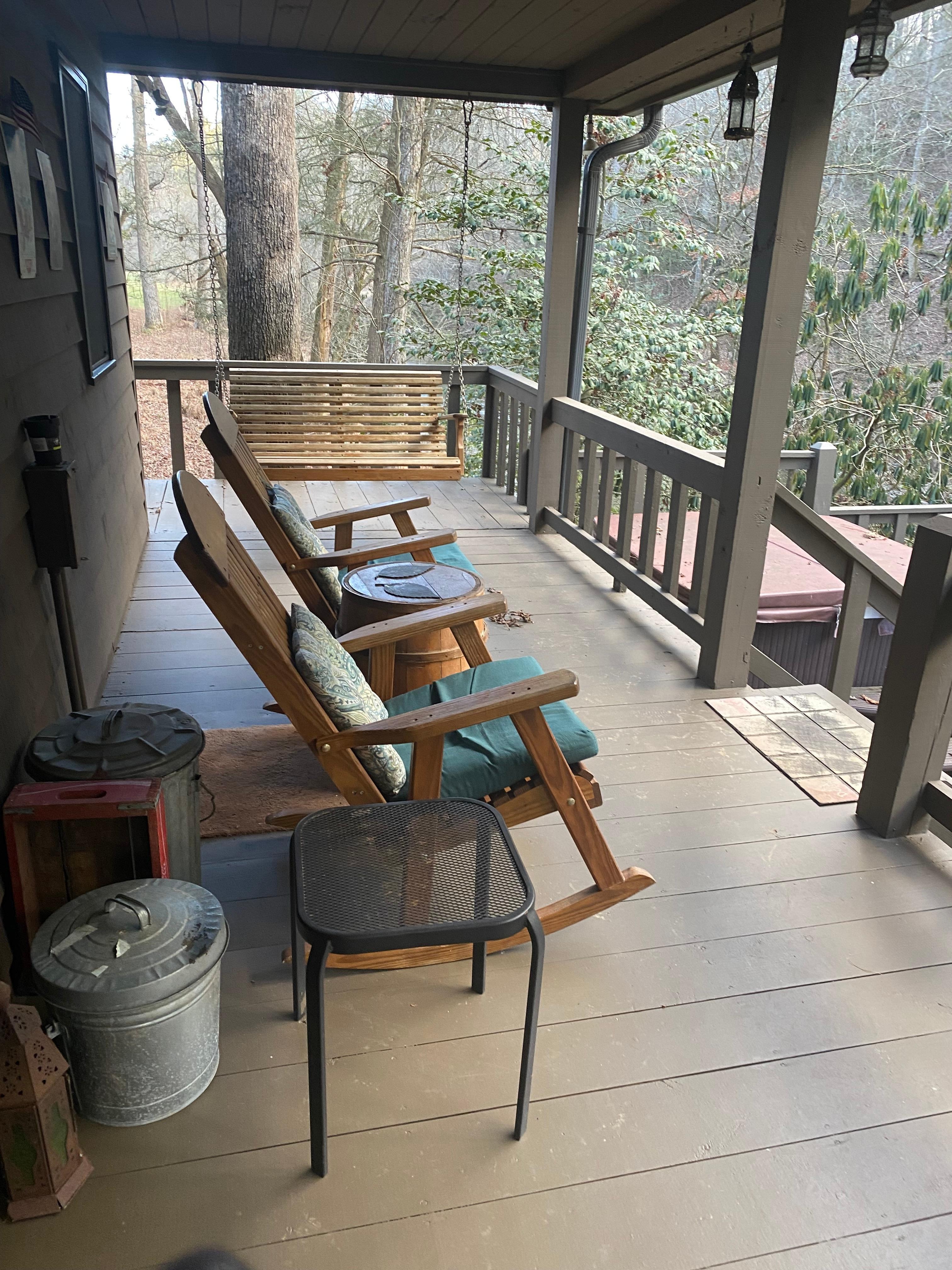 We loved everything about our stay. The cabin is cozy and charming. We kicked back and relaxed on the porch and spent most of the day just listening to the water run over the rocks. A perfect getaway!