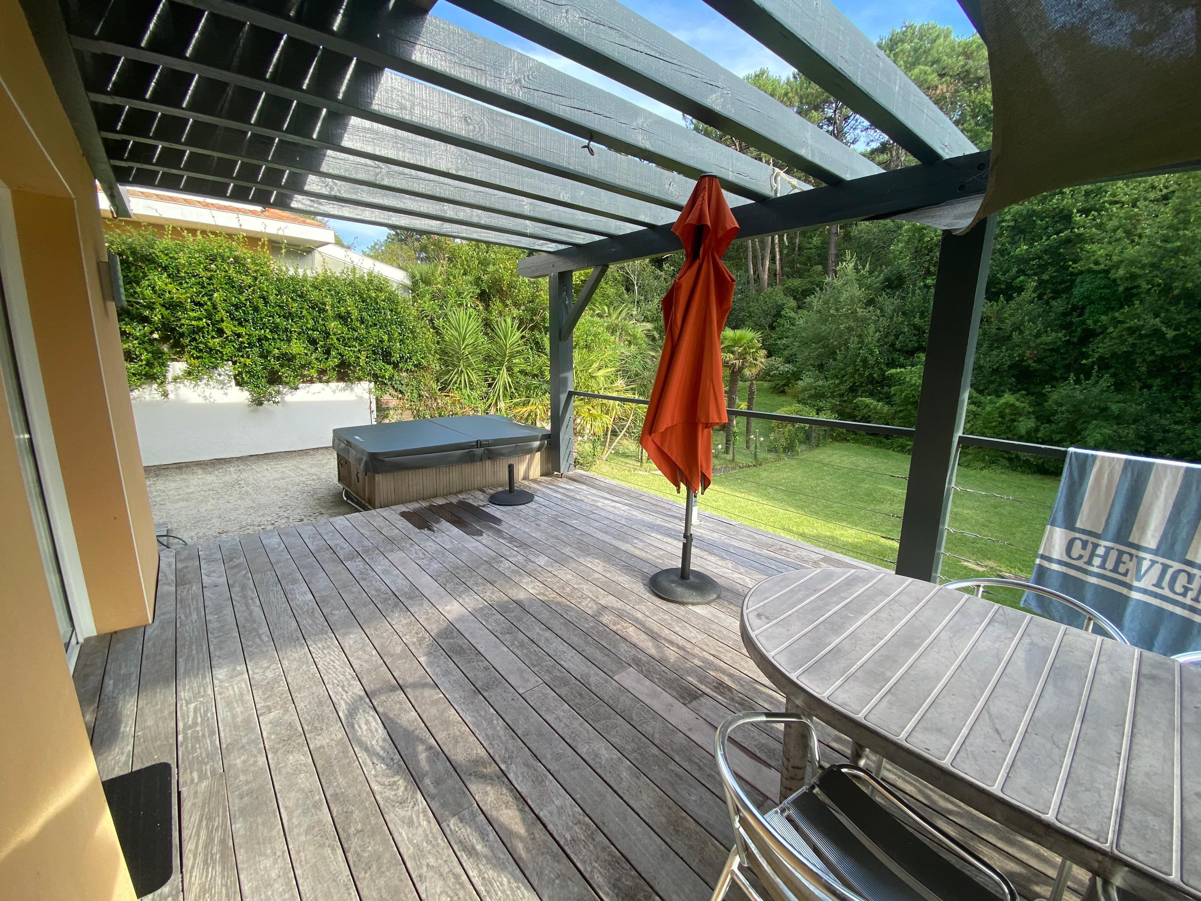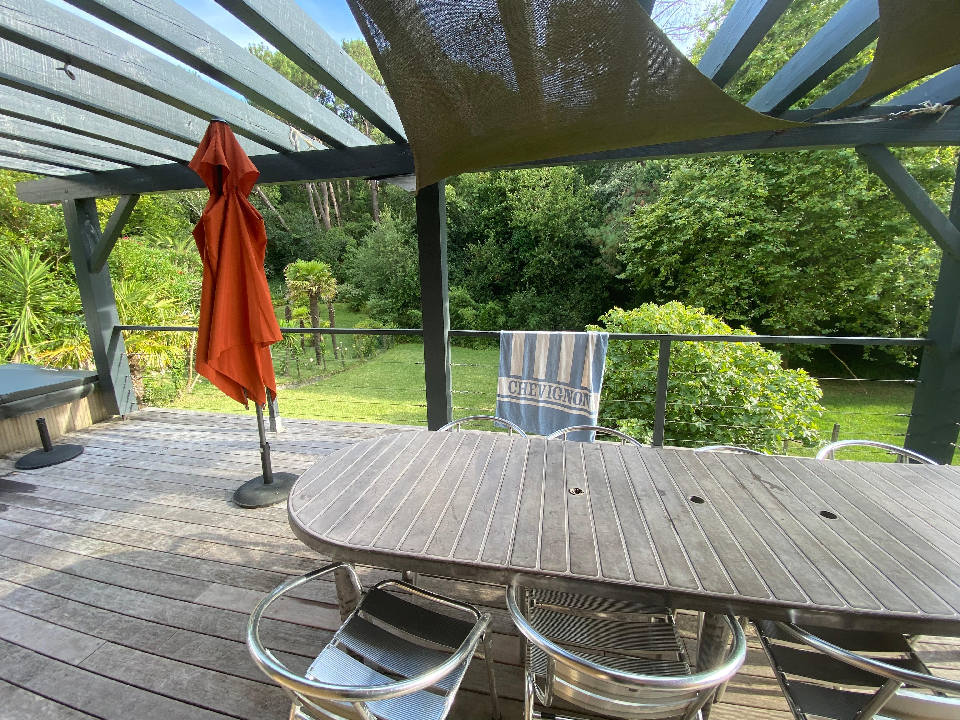 (Text automatically translated) Very quiet, between ocean and forest near Biarritz, California style, comfort and relaxation ... A mobile home in which to ask ... for a week or for a short stay (minimum 3 days except holidays). A 10-minute walk from the beaches of Biarritz south, in a green, without vis-à-vis. On a slope, in a dead end. The sleeping area - 3 bedrooms, a bathroom (walk-in shower) and separate toilet - is located at the entrance. Two of the bedrooms open onto a large south facing balcony. Beds: 1 bed 160x200, 1 140x190, 160x200 1 (or 2 single beds 80X200) 4th bedroom on request On the lower floor, a large living room - dining room and fully equipped kitchen with large windows opening onto the south facing terrace. Jacuzzi, gas griddle, garden make for delicious moments outdoors, overlooking the trees at the bottom of the field. Parking and garage for storing surfboards or golf clubs and schools ... surf spots to throw; Training Centre Golf ilbarritz (unique complex in Europe by the beauty of its site and technical level ) 5 minutes by car.