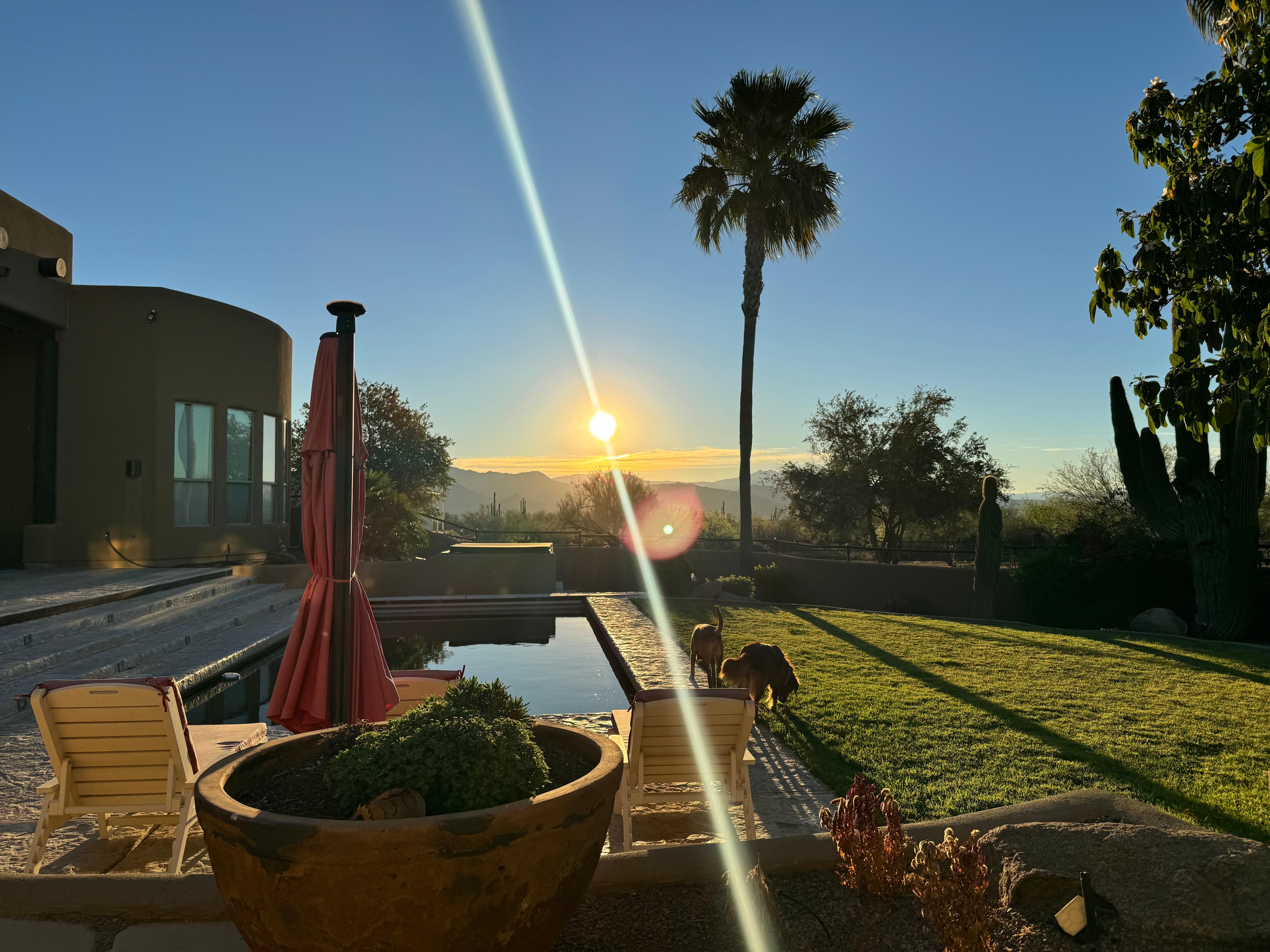 Originally from Seattle area, work took us to Montana. My wife and I got tired of the cold. searched for year looking for just the right place. not really city people, the property here in north Scottsdale fit us the best. Some of the worlds best Horse trainers are just a couple miles away, as we are into Reining Horses, and my wife competes all over the U.S. The drive in can be a little bumpy at times, but once you are here, the dessert beauty and quiet makes you forget. We live next door in the main house with our 3 small dogs. they are very friendly, and only bark to sound tuff. It’s hard to beat the Arizona, weather, people, and activities right in our back yard.