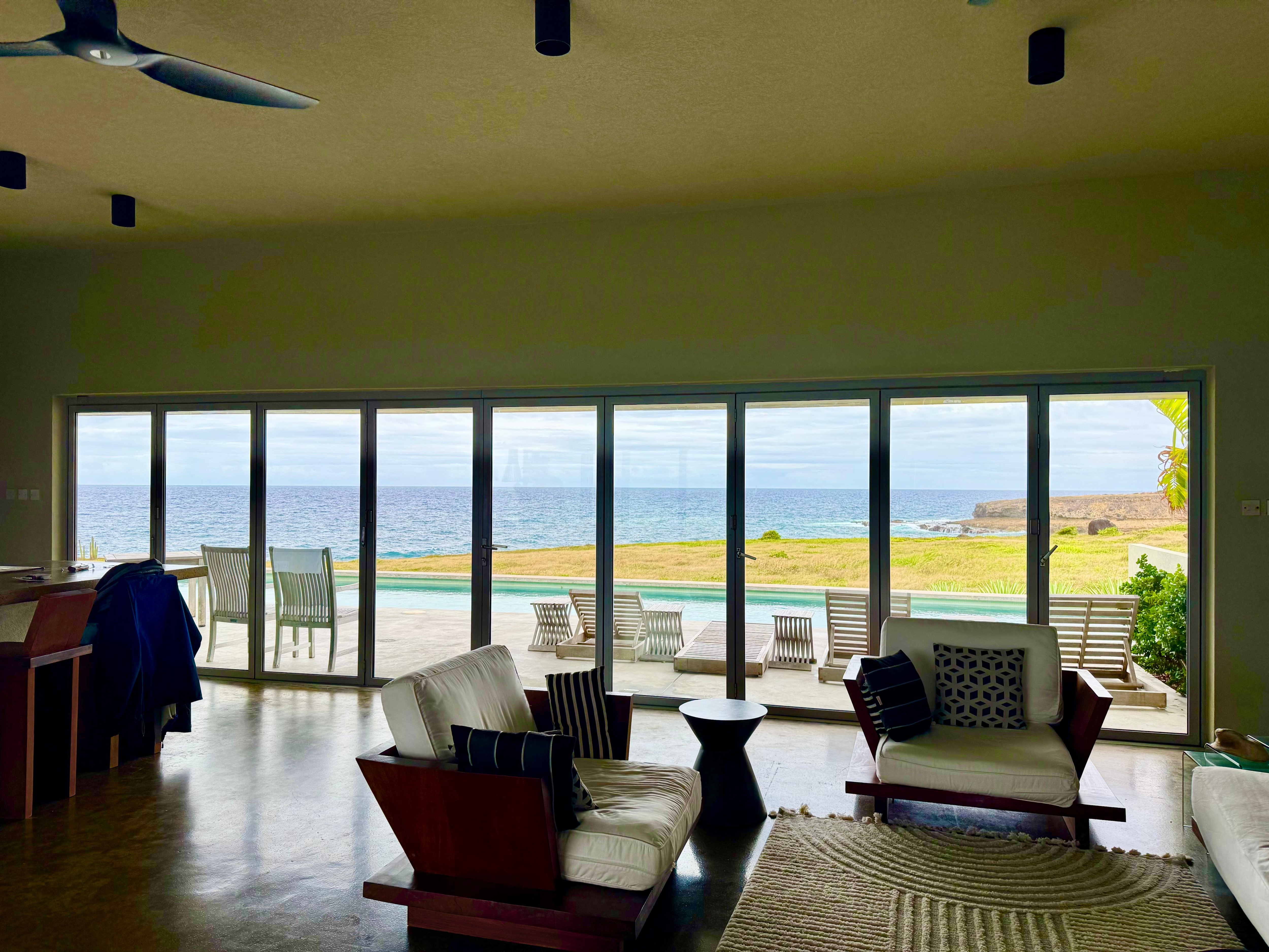 Satori Ocean House is equipped with wide door openings with stunning views and refreshing breezes. As you sit at breakfast you will look in one direction to dramatic oceanside cliffs, pummeled by waves and high sea spray. Turning to the other direction you will see white capped surf finding its way to a beautiful sandy bay lined with coconut trees. In the evening you can sit on the rooftop patio and watch the sun set over the hills and marvel at the wide expanse of the Atlantic Ocean around you.