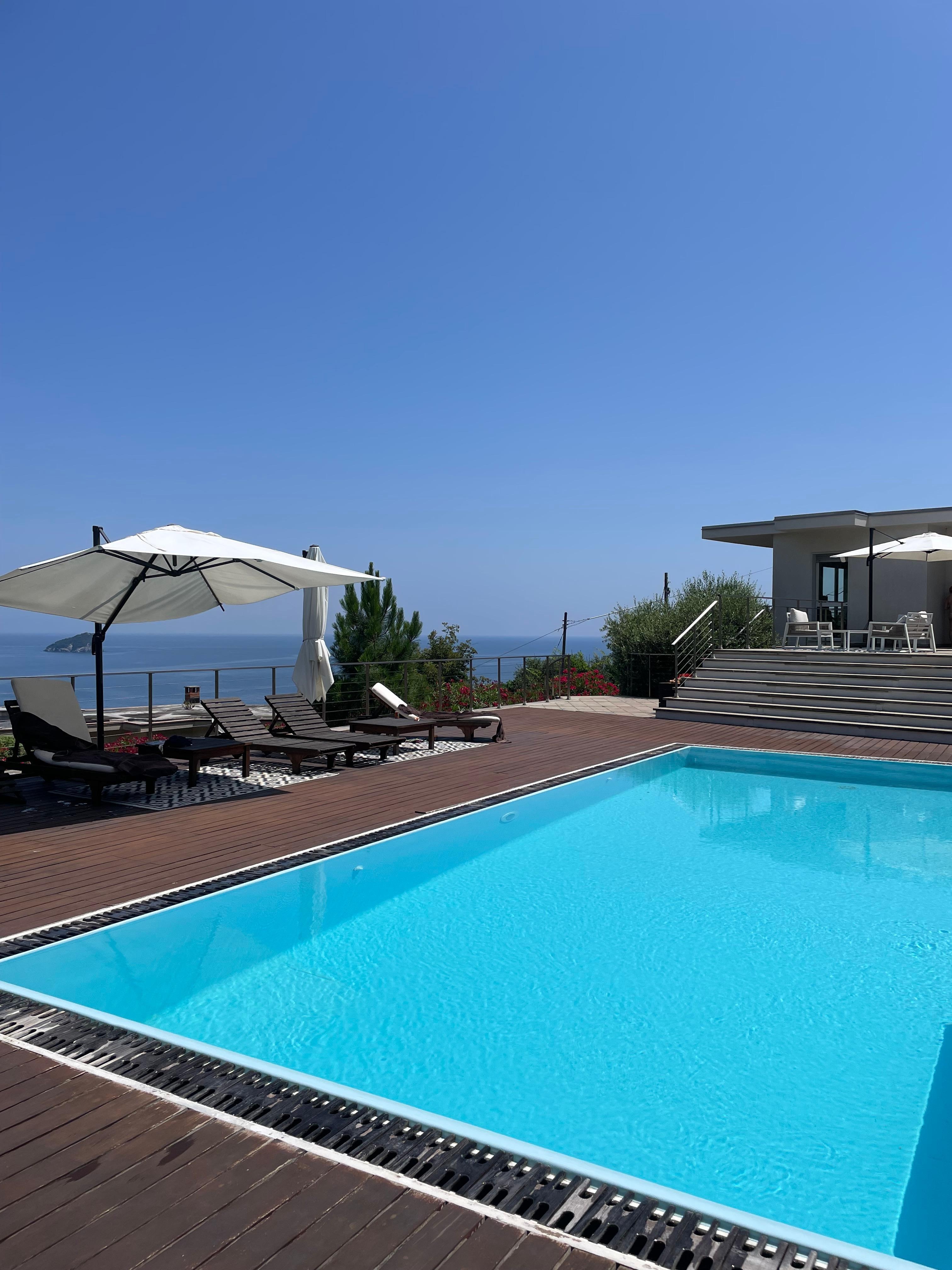 The secondary apartment consists of a living room with two double sofa beds, a double bedroom and a bathroom.Enjoy a wonderful holiday in complete privacy and relax on the large terrace, situated in a garden with solarium terrace, dining area and barbecue, or cool off in the private swimming pool overlooking the Gulf of Spotorno. You can get to the beach with a relaxing short walk in the pine forest, the sea is just 1 km away.