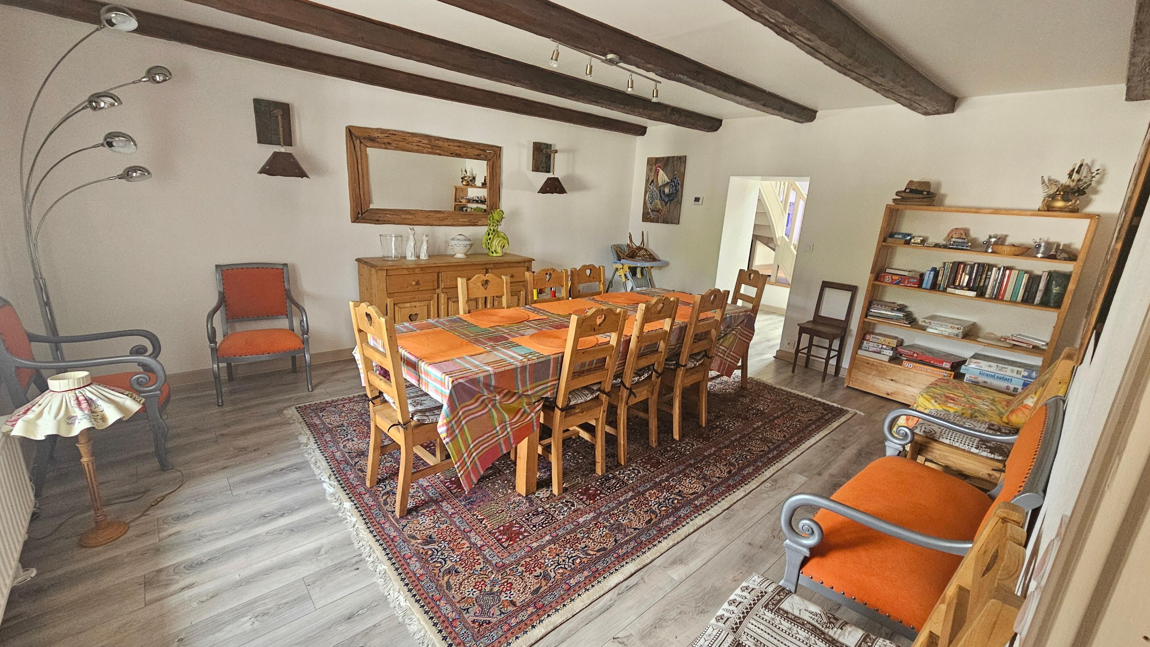 apartment on 2 levels 6 persons 130 m2 in small building on the top floor (2nd floor) 1 bedroom bed 160x200 with TV 1 second bedroom 180x200 or 2 beds 90x200 on request with TV 1 third bedroom bed 140x200 1 WC 1 bathroom, upstairs 1 covered dining room 10 people very well decorated exposed beams 1 fully equipped kitchen large fridge, dishwasher, washing machine, dryer, living room with armchair sofa with large screen TV toilet and toilet