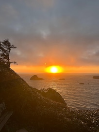 Welcome to the SeaBreeze. Centrally located, small town coastal living in a unique setting. 270 degree panoramic, primarily south-facing views of the Humboldt Coastline, Trinidad Harbor, Trinidad Head, and the western skyline. Enjoy the sunrise over the coast range mountains, and the sunset into the Pacific from every room in the house.