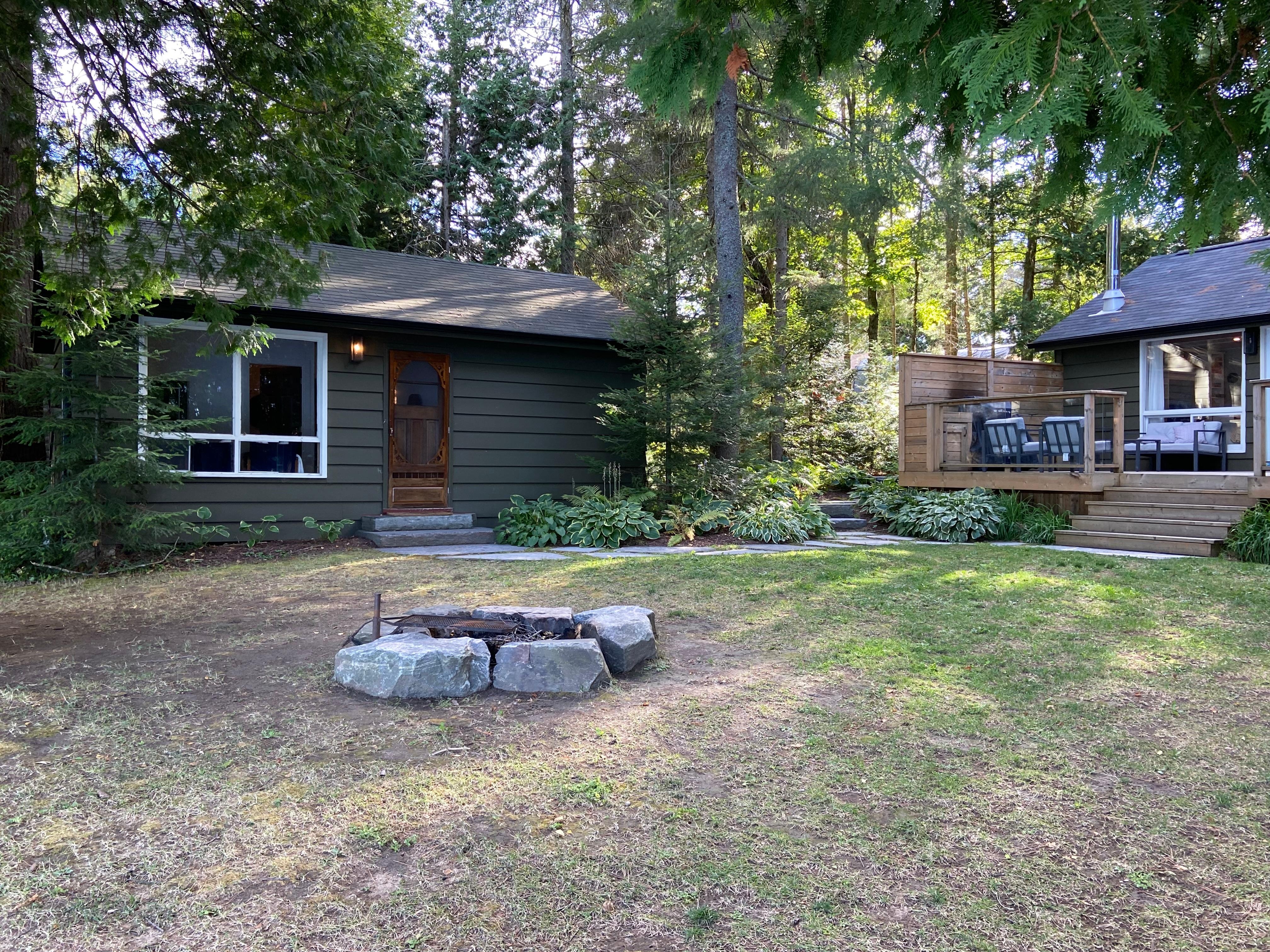 Sleeps 8. The main cottage features two bedrooms with queen and two twin beds, full kitchen, bathroom and living room. The Bunkie (located even closer to the water) features two more bedrooms with one queen and full bunk beds, as well as living room and three piece bathroom.