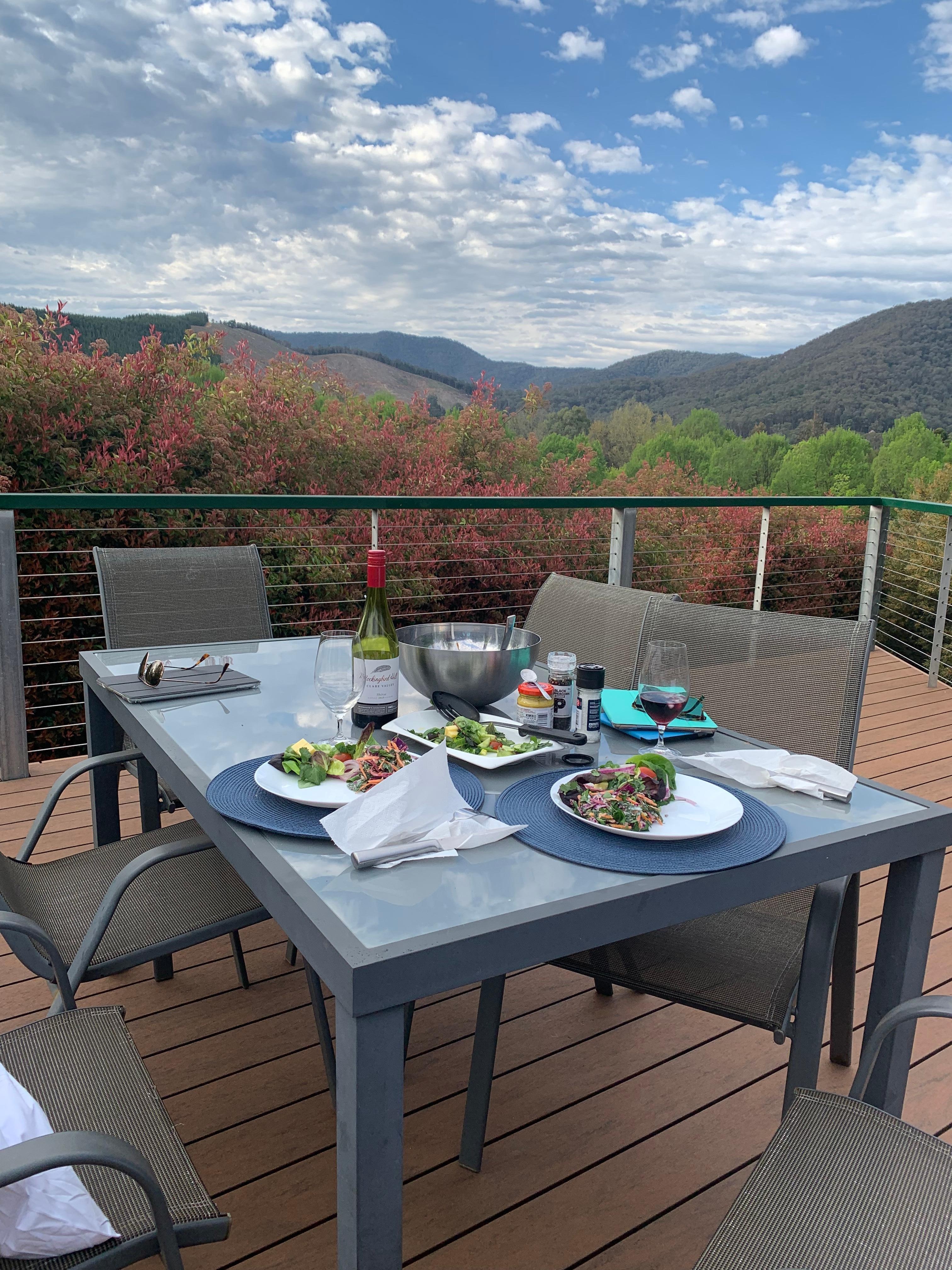 The light & airy fully equipped kitchen offers everything you could need to create a family feast or BBQ with mountain views on the spacious deck. Wine & dine under the stars or watching the world go by way beneath you.