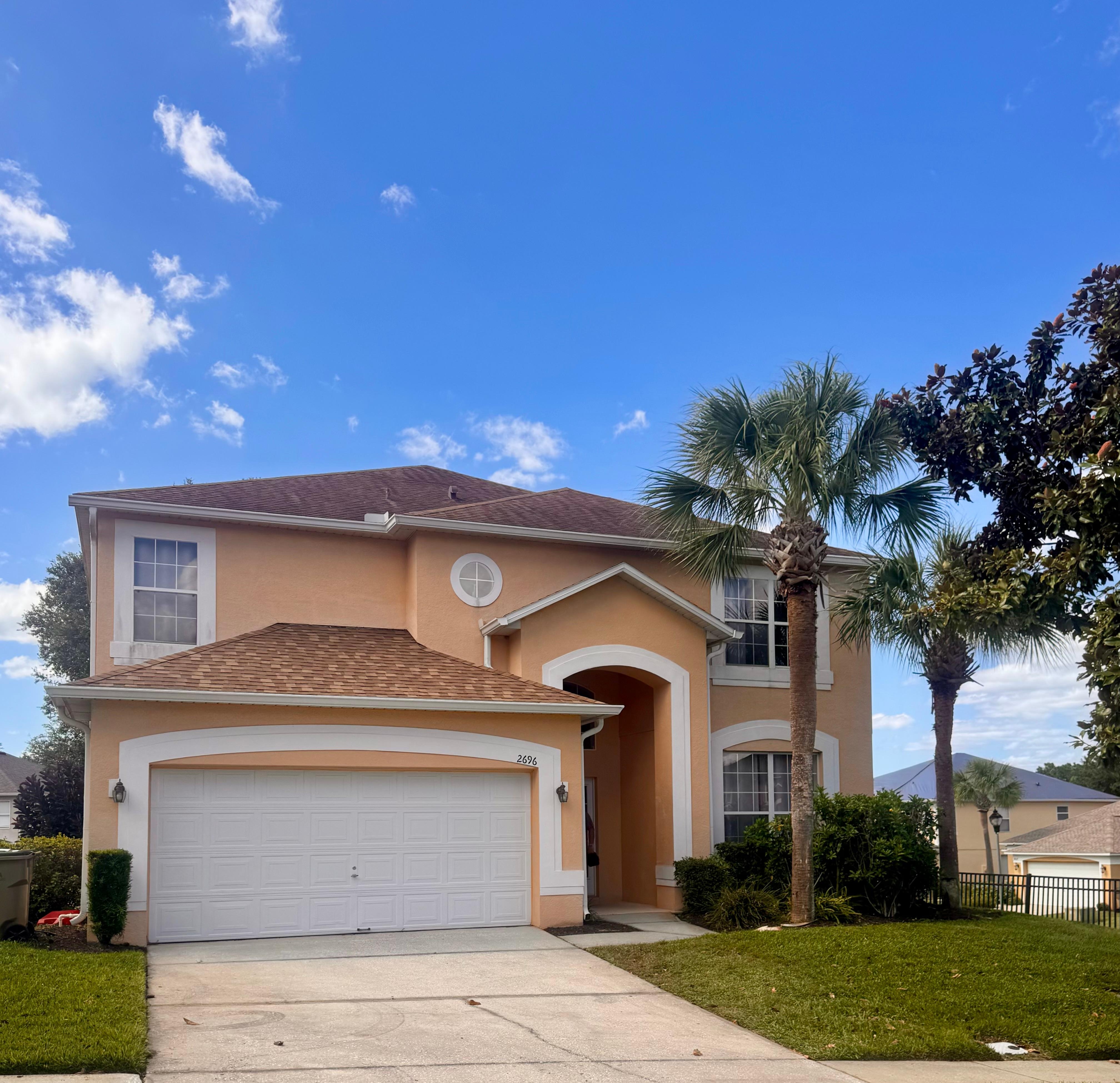 Beautiful, executive, two story, 2900 Sqft villa with 6 bedrooms and 5.5 bathrooms which includes 4 master suites! Southwest facing Screened Southwest Private Pool and Spacious Covered Lanai. Located on a peaceful court in a beautifully well-manicured, prestigious and 24 hours guarded community. It can comfortably sleep up to 13 guests. 2 King & 2 Queen Master En-Suites provide the needed privacy with attached bathrooms and separate Cable TVs. One of the king Master En-Suites is located on the main floor. Bedroom 5 & 6 are furnished as Princess’ room and Mickey’s room with 3 twin beds and 1 bunk-bed and share a full bathroom. Fully equipped kitchen makes you feel home away from home. Family room with 18 feet high ceiling provides lot of Sun. Separate Living room and a Powder room are nice additions to the main floor.