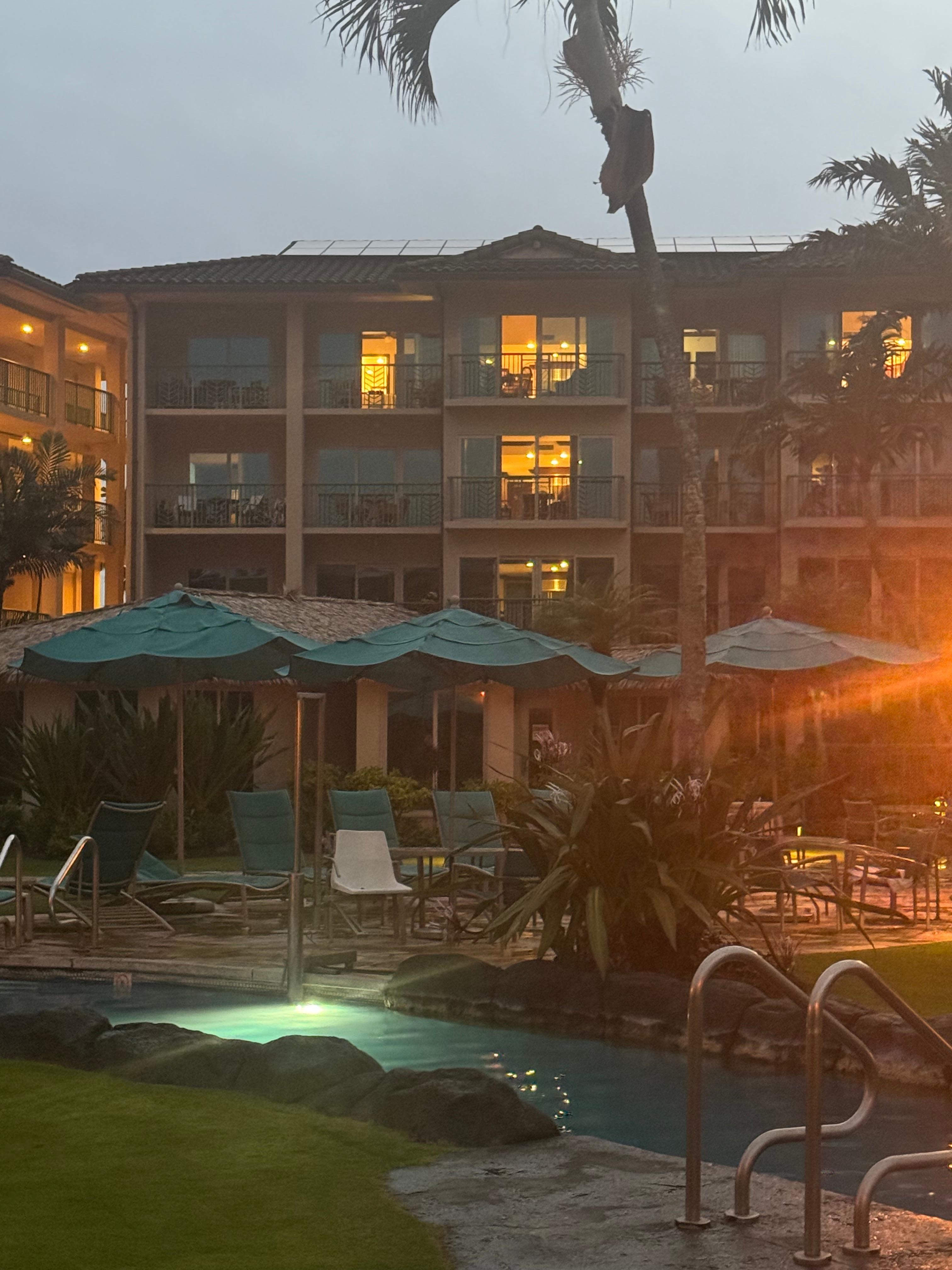 Waipouli Beach Resort & Spa features breathtaking beach sunrises, a state of the art lazy river pool complete with water slides, waterfalls, hot tubs, sandy bottom children's pool, beautiful tropical landscaping lit up at night with tiki torches, a spa, and beach restaurant.