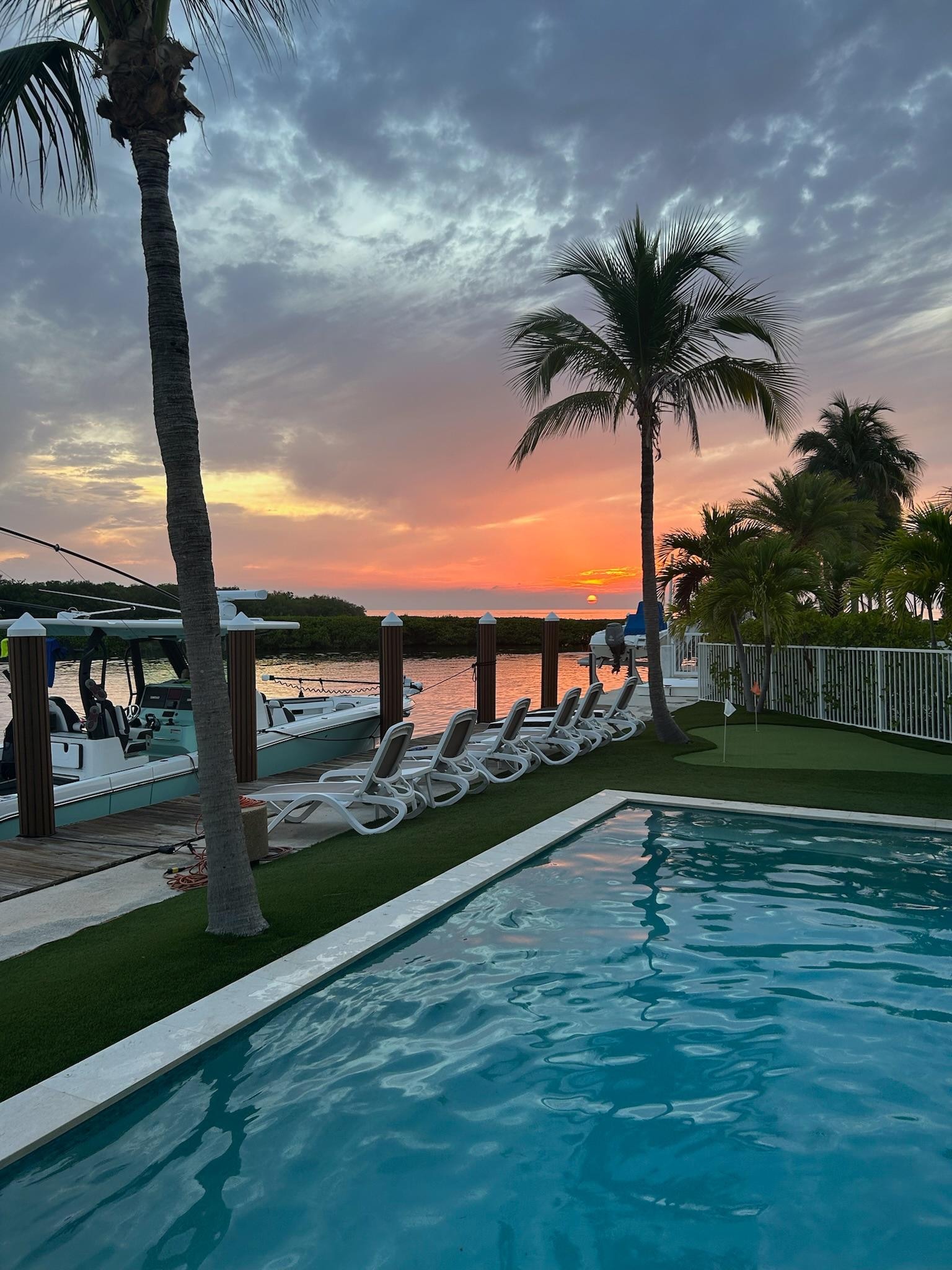 After your long day of activities, relax with a cool swim in the pool or a water massage in the jetted spa. Have a cool beverage & enjoy the custom designed putting green or a game of corn hole. Plenty of breezes in pool area. Then head upstairs to enjoy the gorgeous sunset from your private porch.