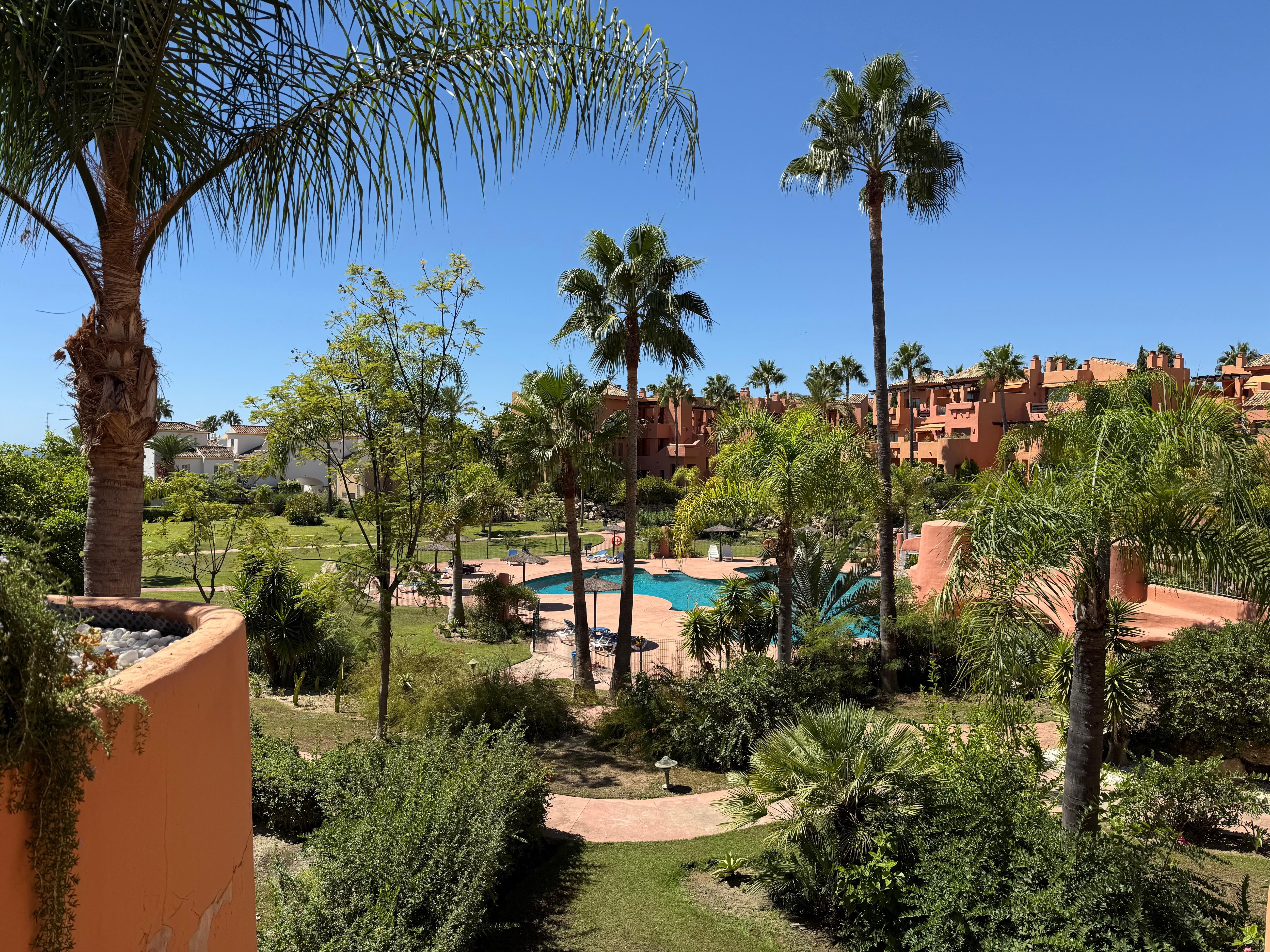 We were lucky with the weather. The apartment is well furnished and definitely a home for home. Very secure. A car is needed as it is for most similar properties in the area. It made a great base as we were visiting much of Andulisia and if you are a golfer then it is paradise, so many courses to choose from.