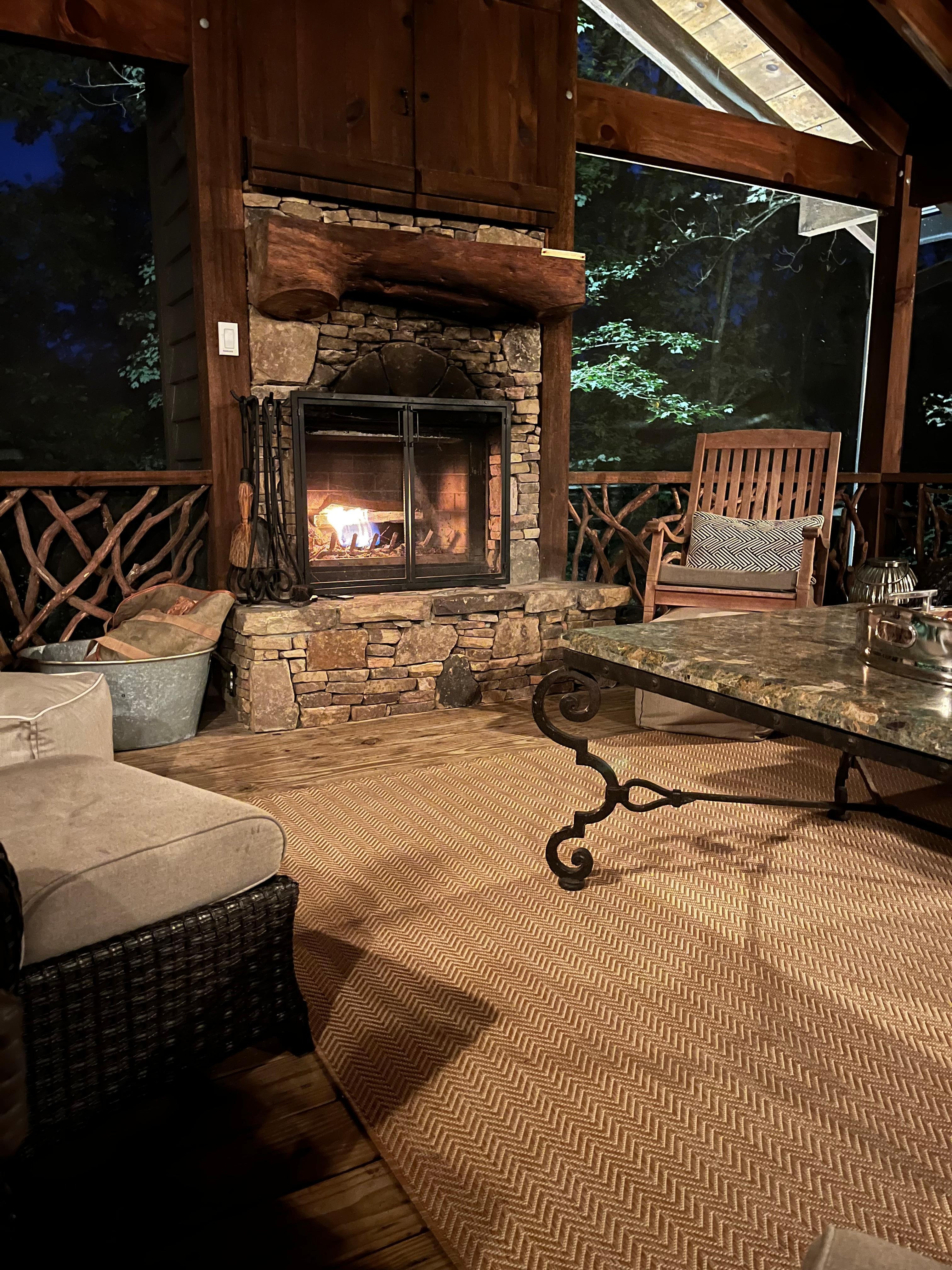 The expanded screened-in back porch provides a peaceful respite after a day of outdoor excursions, activities, or cultural events. Build fires in the wood burning fireplace on chilly autumn evenings, watch football games and your favorite movies on the smart TV, or just relax and listen to nature while enjoying a cup of coffee or a glass of wine.