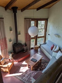 Architect-designed and built with recycled materials Banksia Cottage is split-level with living area, kitchen/dining, 3 bedrooms and 2 bathrooms. The cottage has a wood burning fire and gas heater and is on solar power. There is a fully equipped kitchenette with gas oven, fridge and microwave. A radio with ipod station and games including scrabble and monopoly are provided. Outdoors there is terrace with dining table and gas BBQ in a bush setting.