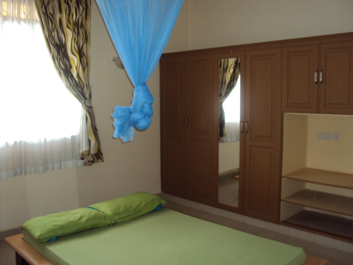 Swissapartments is located in a quiet environment of munyonyo, just next to the shores of lake victoria, supermarkets, and malls are just stone throw a way, my apartments have fully equiped functioning kithens, a washing machine, an inverter is readily availble in case of power shortages. Outside seats available for your evening relaxation, a guard is availble 24/7 . Digital television for those who watch television is also available. regards. Ken