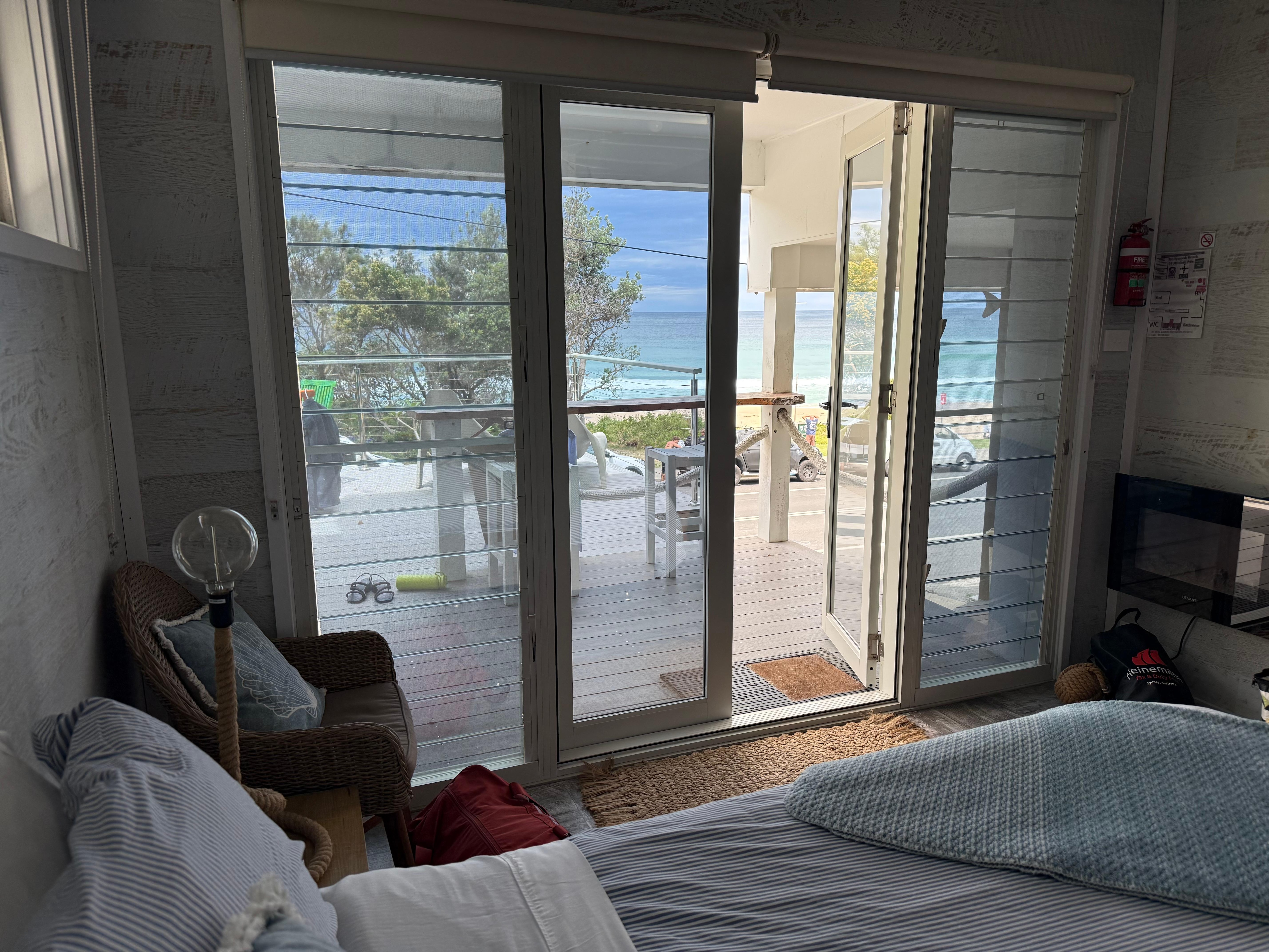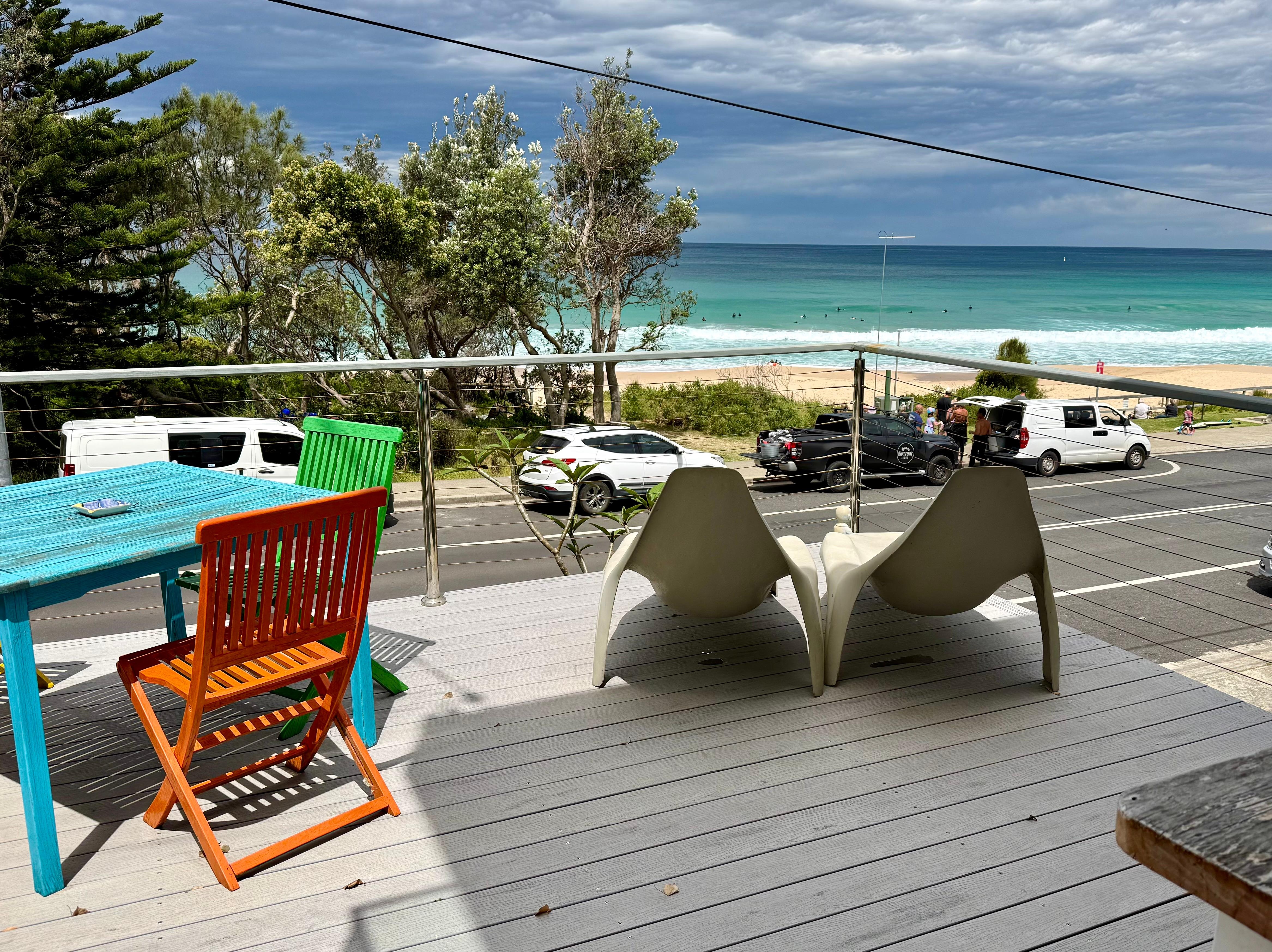 The big timber deck can be transversed by other house guests to link with common stairs and laundry, but the use of the deck’s furniture is exclusive to Beachbar.