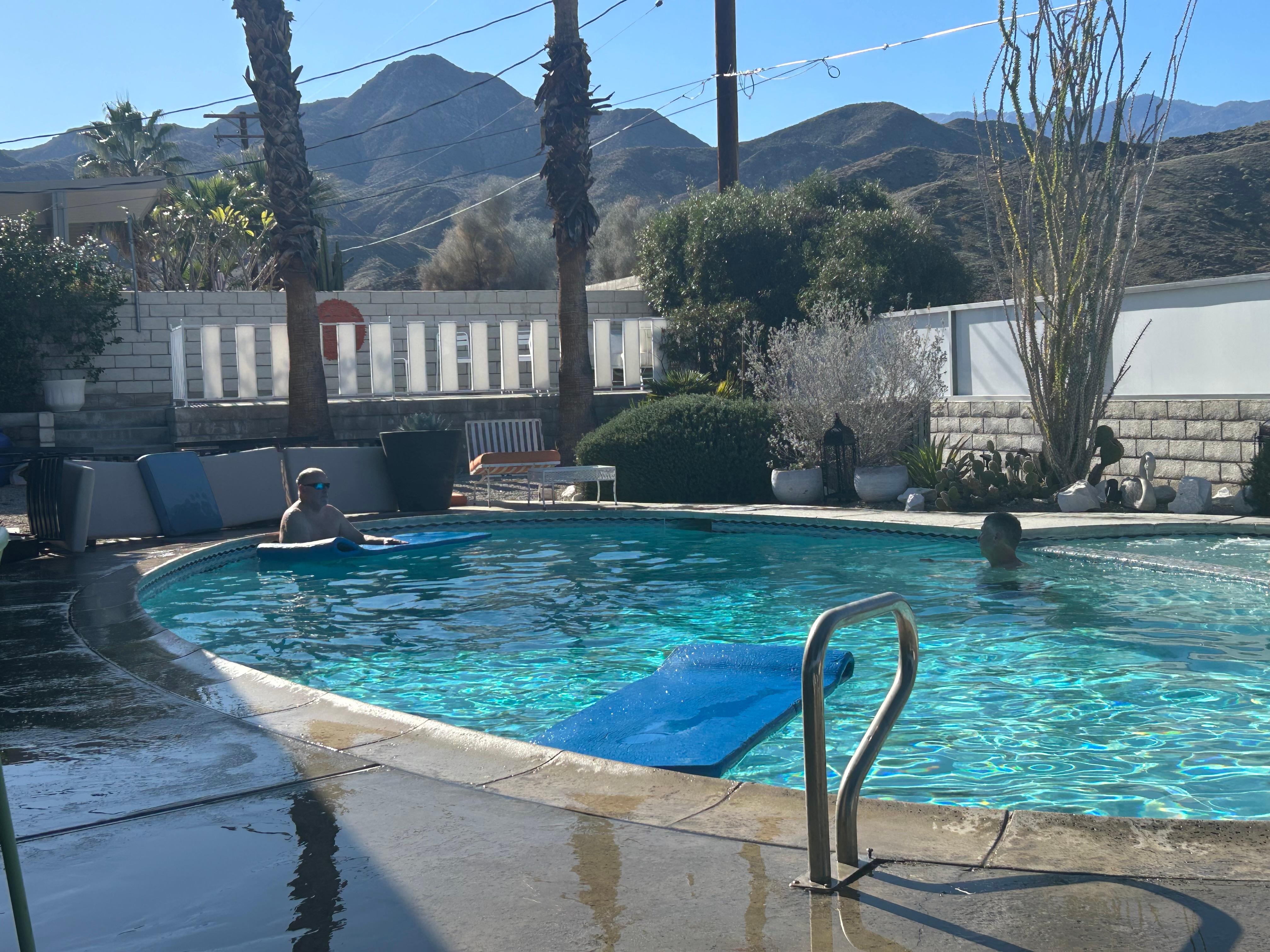 The Pool: Redone in 2022, it is one of the old fashioned egg-shaped pools. It is deep enough (9.5' at the deep end) to keep it swimmable even in the hottest afternoons. Heated during the winter, it provides just enough length for lap/exercise. There is a 'Dinah Shore Shelf' for partially submerged sunbathing, easy-access steps for entry, and an attached spa/hot tub for soothing the muscles after a hike behind the home.