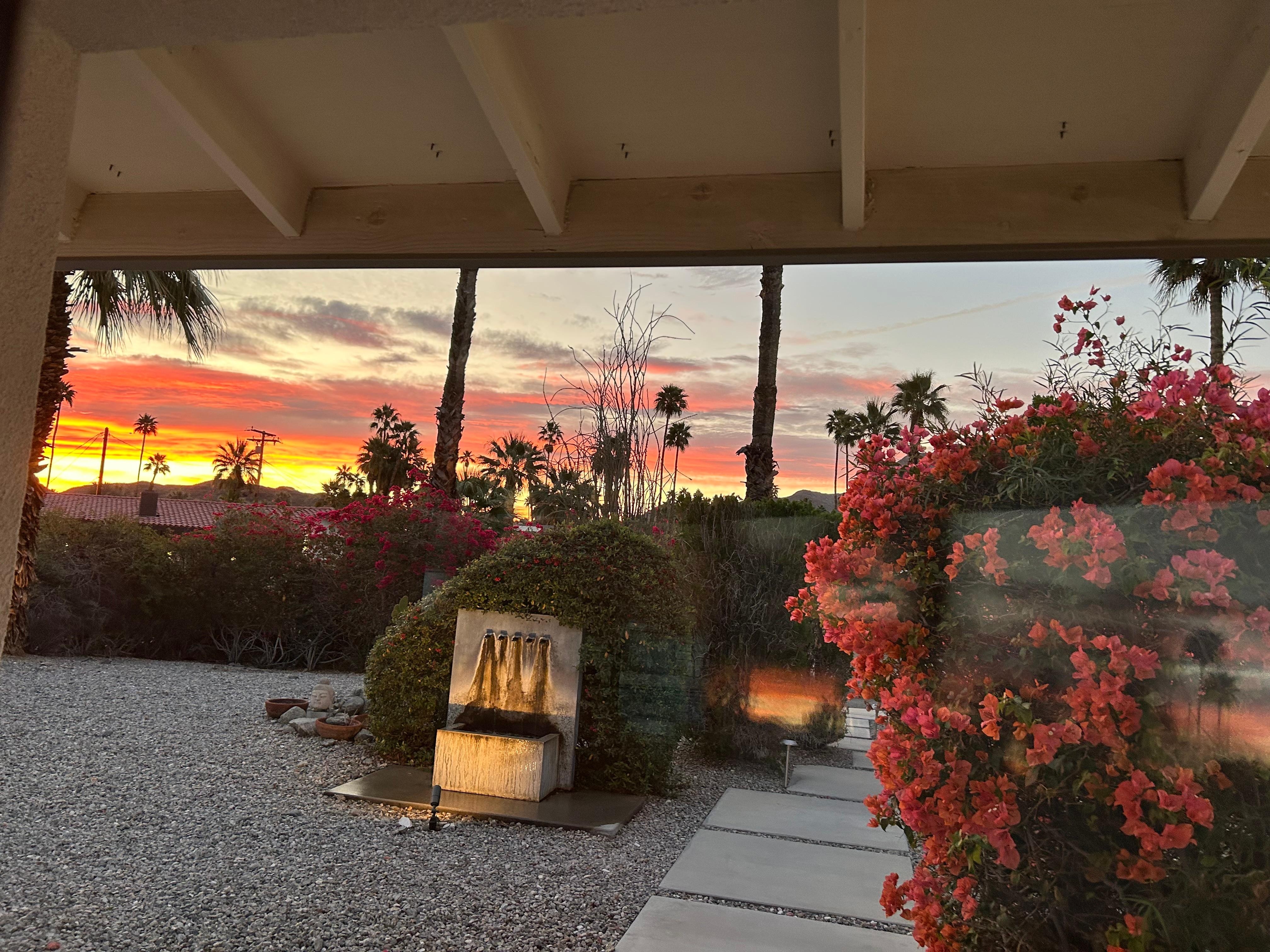 This was our 8 year anniversary getaway, 2 and 5 year old kids included. Love the bright airy feel all the windows in the main living space provide. Bougainvillea, cacti, palms, and a fountain to the front, and the double glass sliders opening to the pool and mountains in the rear- so peaceful and pretty. Just a few minutes drive to down town Palm Springs for our favorite restaurants and shops, and right down the street from Target and Trader Joes, this home is in a great spot. Susan was a very responsive and helpful host. We had a question regarding the spa and she responded immediately and helped us out. We had a very relaxing, pool and sun soaked stay. Oh, and be sure to have bite or sip on the elevated patio for a great view! We would without a doubt book this home again!