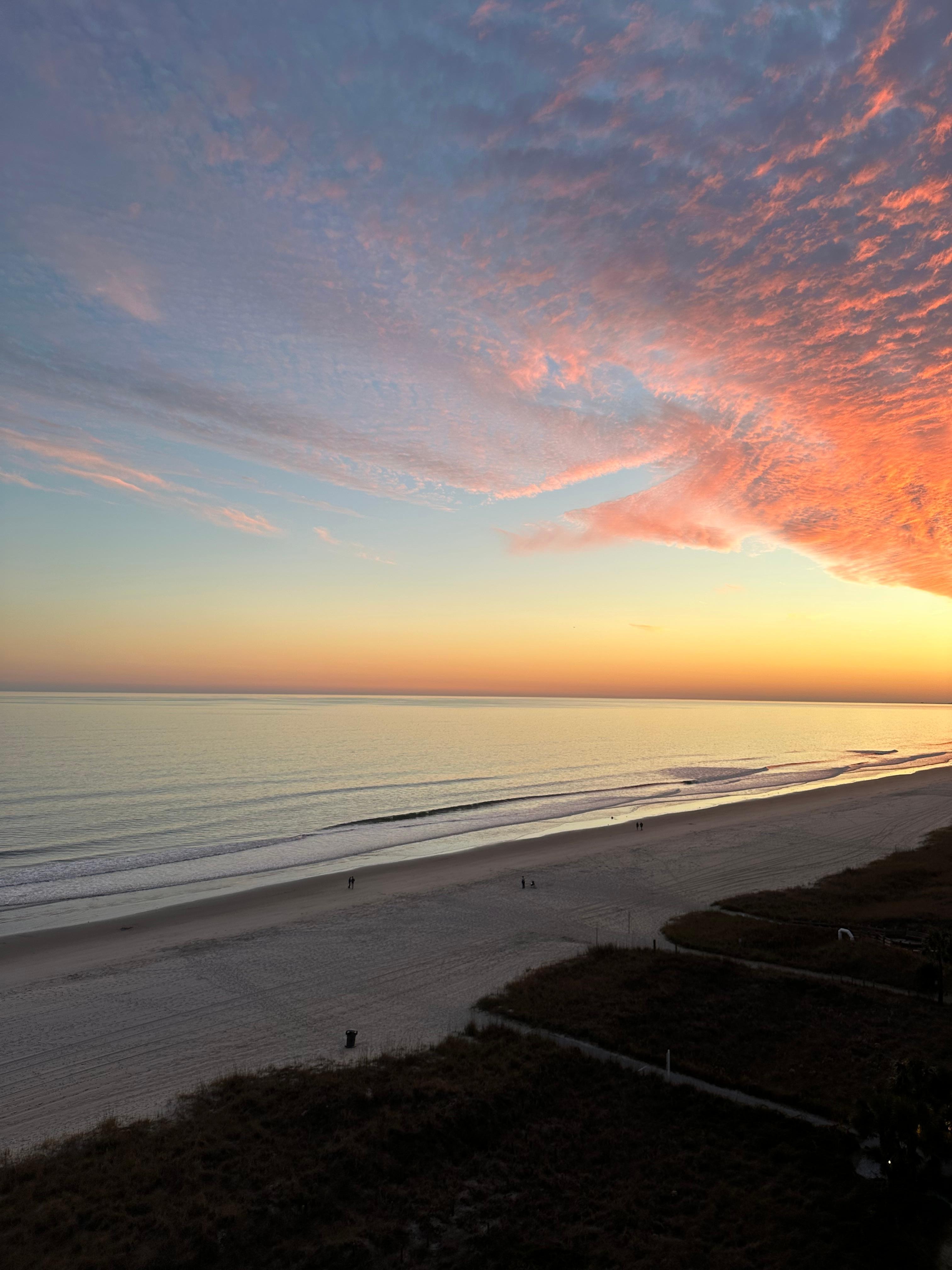 Beautiful contemporary 1 bedroom, 1 bath spacious condo perfect for honeymoon, anniversary or that romantic getaway. Keyless entry for guest convenience and no contact check in. The code is changed with each rental. Living room includes 65 inch Ultra High definition/ 4K premium smart TV, 4K Blu-ray player, private secure high speed WIFI for our guests, electric fireplace (for mood and/or heat), and opens to a balcony with spectacular views of the beach and ocean to enjoy beautiful sunsets. King size platform bed with 14 inch plush comfortable mattress and smart tv are included in the bedroom that has a stunning accent wall. Adjacent bathroom that includes shower and tub. The kitchen includes quality black stainless steel refrigerator/freezer (w/ ice maker) and stove/oven, beautiful quartz countertop, dishwasher, microwave, drip coffee maker and Keurig kcup coffee machine, and slow cooker.. Enjoy your home-cooked meals or delivery on the counter height dining table with chairs while taking in the amazing view. Stack washer and dryer in condo for your convenience. The balcony includes 2 counter top chairs with a table in between them and 2 cushioned chairs. Outdoor seasonal pool and plenty of lounge chairs. We have a beach closet that we provide our guests with chairs, umbrella, wagon, coolers, towels, etc. We provide guests with bath and bed linens. The property has parking on site and across the street. There are 2 elevators with security codes located on the property Convenient location that is 5 blocks to Main Street with restaurants, bars, stores and more. We encourage all guests to purchase trip insurance in the event of an unexpected emergency. We are unable to refund or reschedule past the cancellation policy.