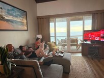 INDOOR LIVING: Flat-screen cable TVs, interior ocean views, dining table, open layout, ample natural light